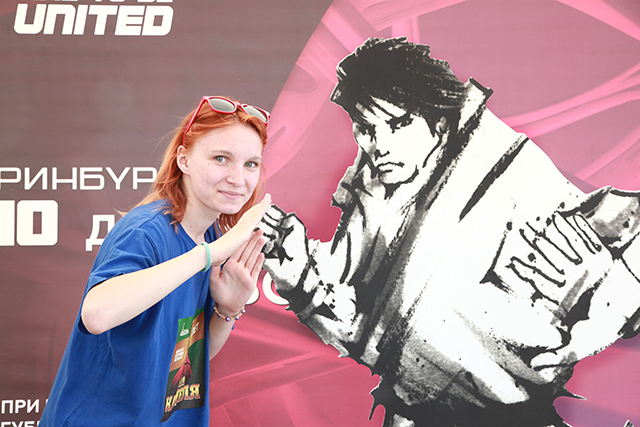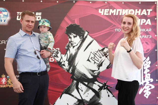 Увеличенный рисунок каратиста в человеческий рост, на фоне баннера 3-го Чемпионата мира KWU, привлекал внимание празднующих и многие с удовольствием фотографировались с каратистом.