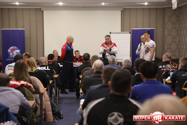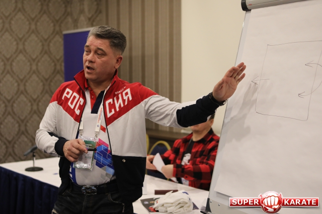 Первый рабочий день для судей, прошел под руководством шихана Рамиля Габбасова - главы судейского комитета KWU и продлился шесть часов с одним перерывом.