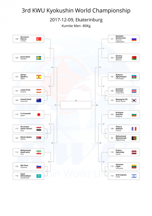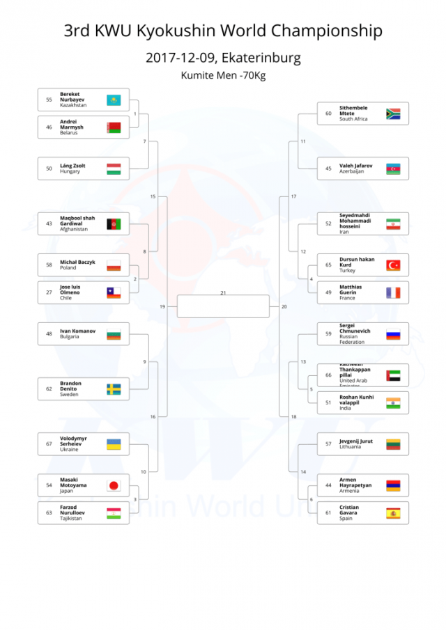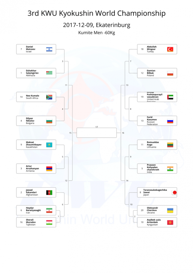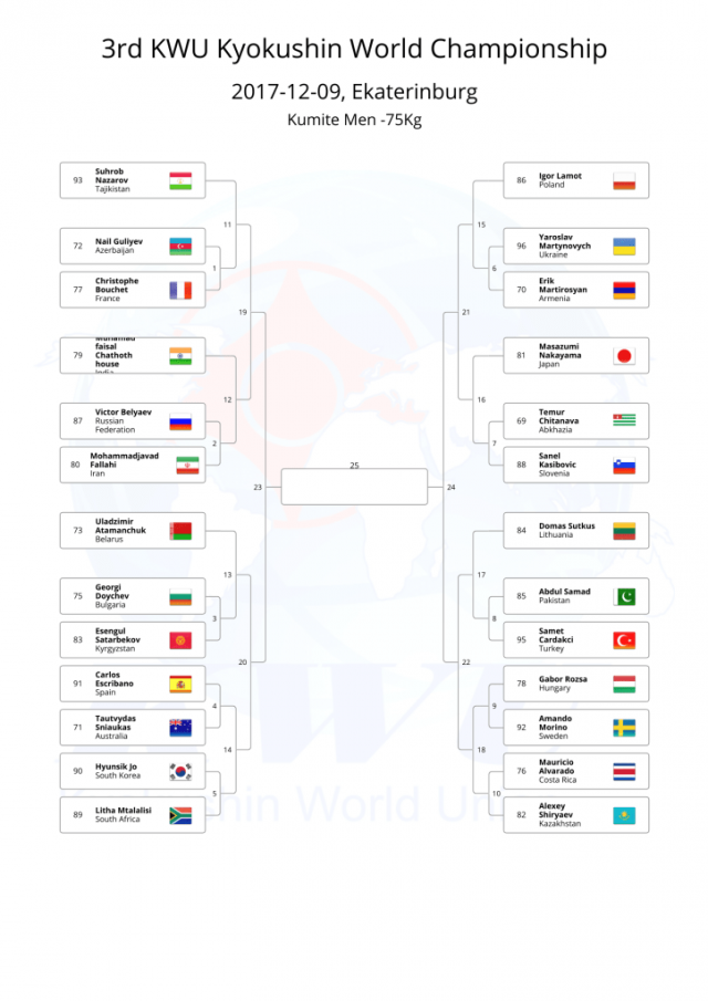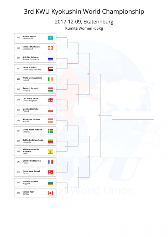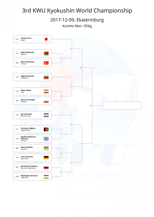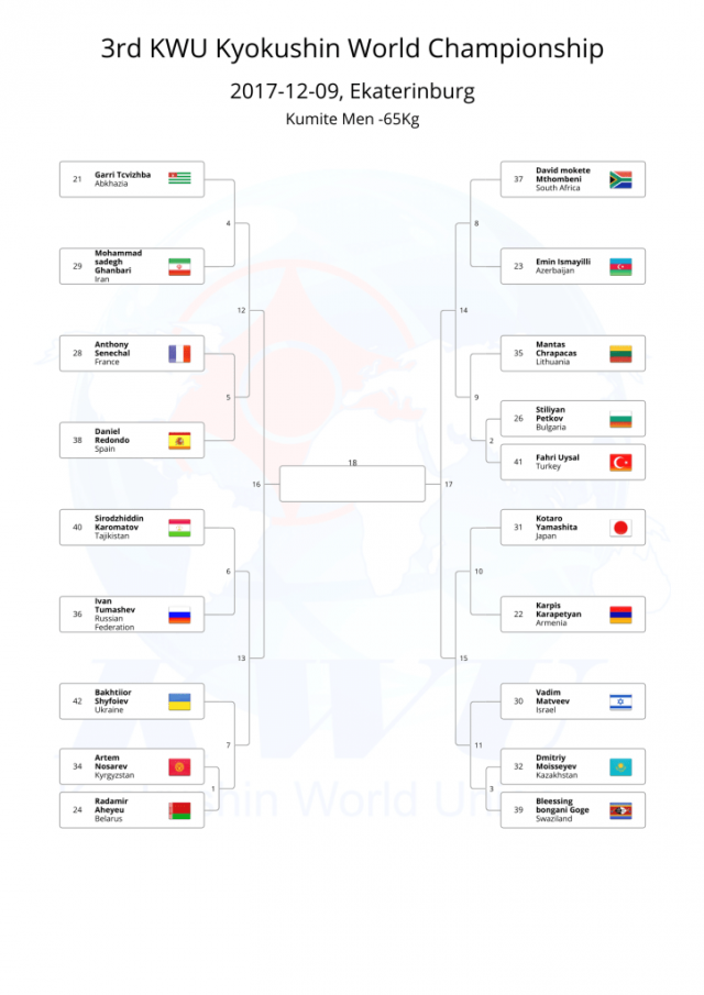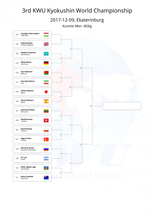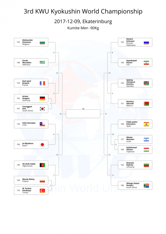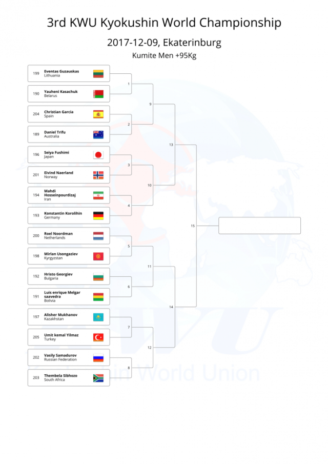 В этом году, оргкомитет Чемпионата мира KWU решил не проводить предварительную жеребьевку, а провести ее после мандатной комиссии, чтобы в турнире не было "мертвых душ".