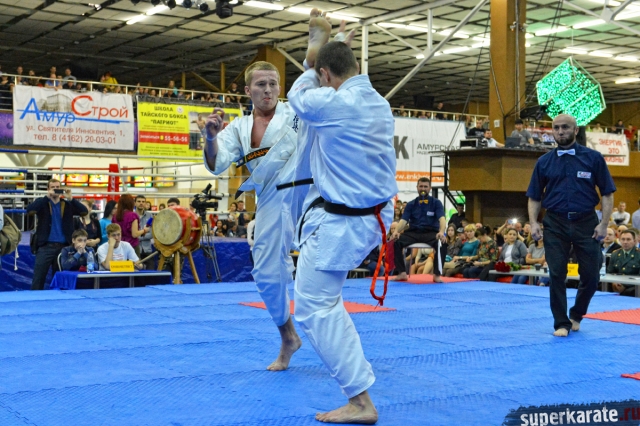 В заключительном бою по Киокушин Профи на татами выясняли отношения каратист из Благовещенска Леонид Горопашный и спортсмен из Белоруссии Радомир Агеев. Три раунда прошли без особых сюрпризов. Единогласным решением судей победителем поединка стал 22-летний Леонид Горопашный.