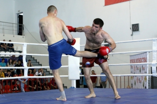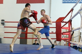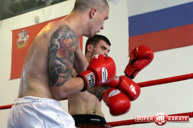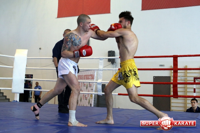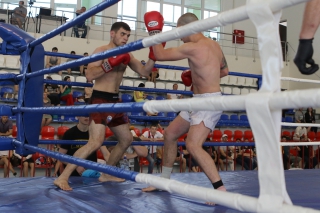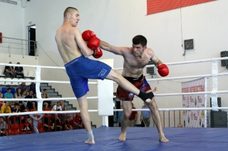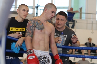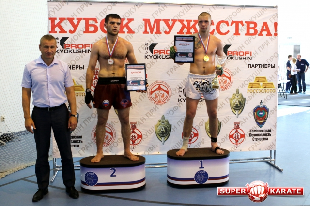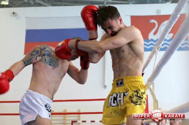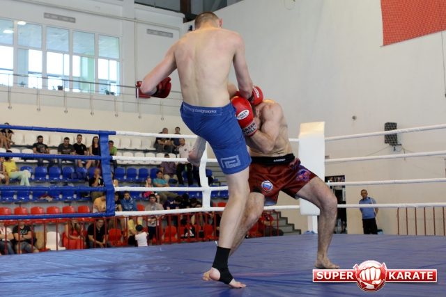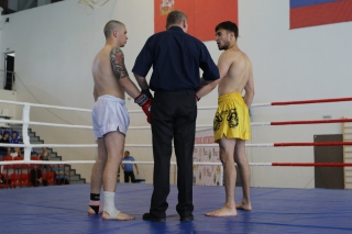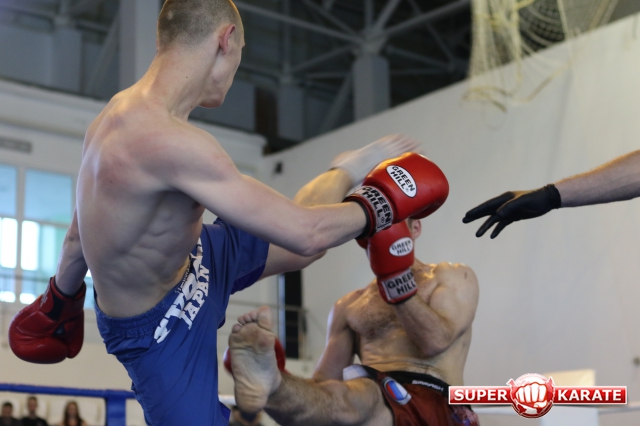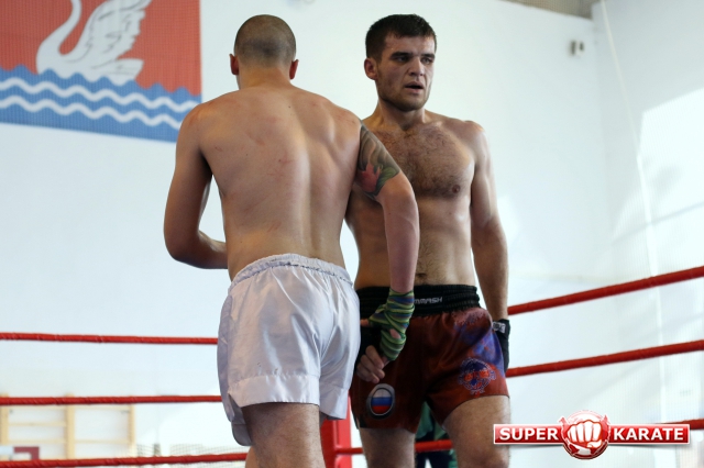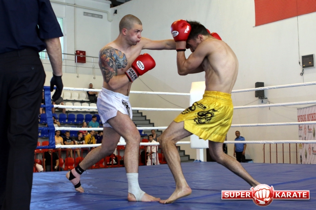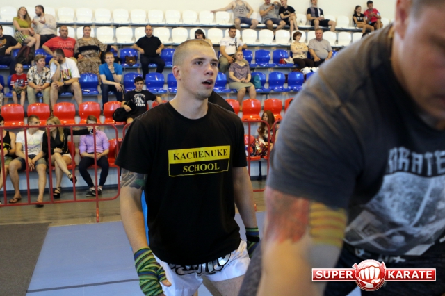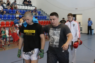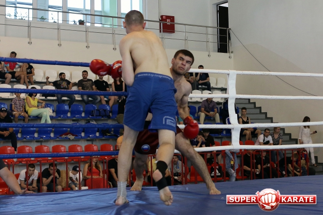 За главный приз билась четверка бойцов: тайский боксер Рахматов Шорух из Самарканда, боец Ушу Саньда Хамидулин Герман из Воскресенска и бойцы киокушина - Елин Андрей и Крутелев Сергей из Благовещенска. Конечно, каратисты уже давно практикуют кикбоксинг и даже имеют спортивные звания по виду спорта, но имеют пояса киокушина и тренируются в киокушиновском доджо по направлению Каченуке.