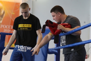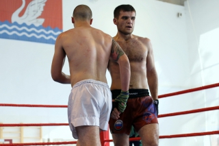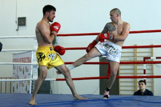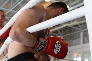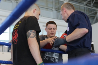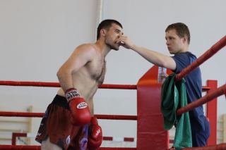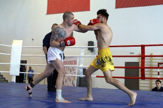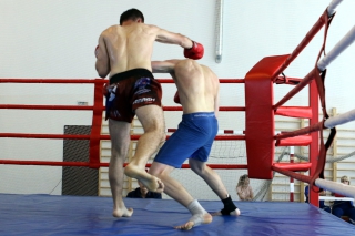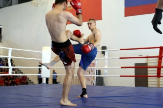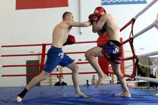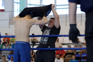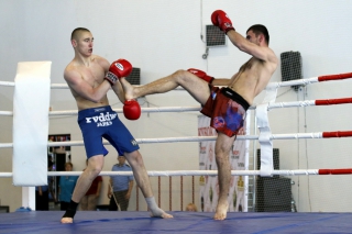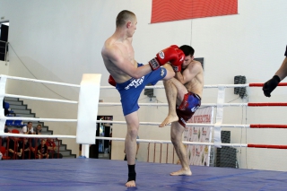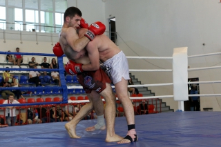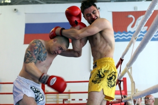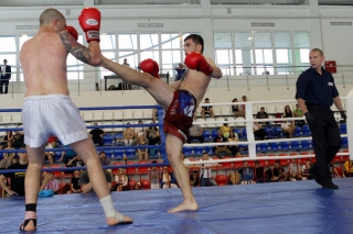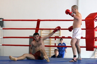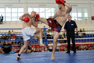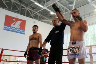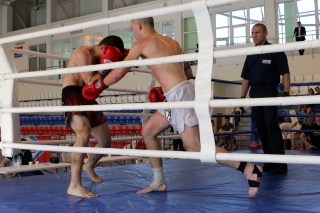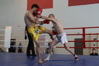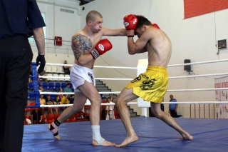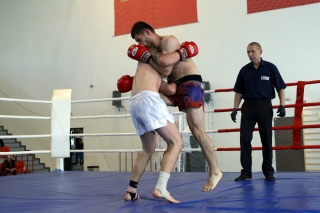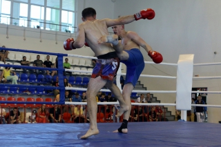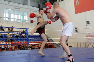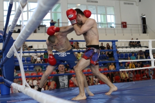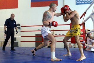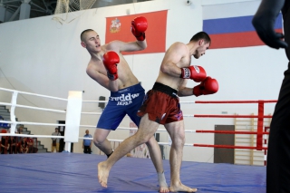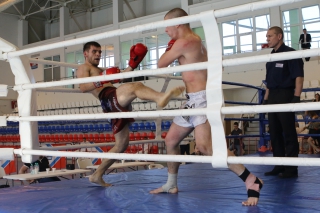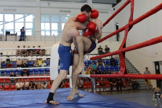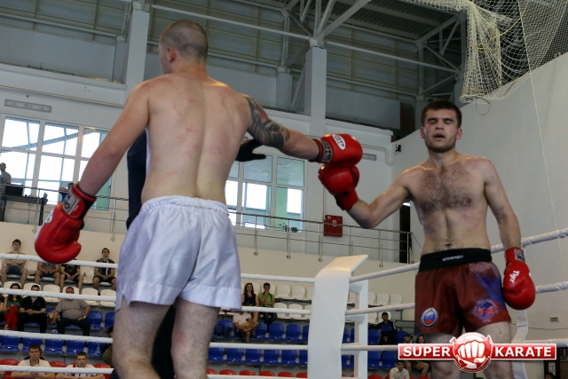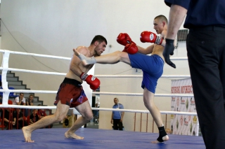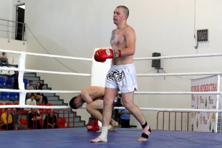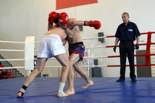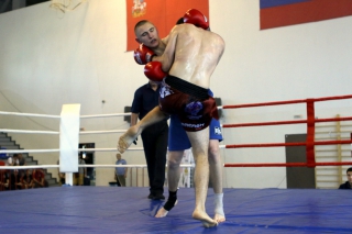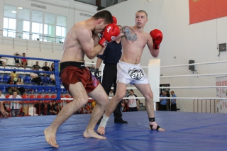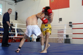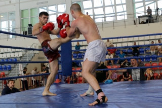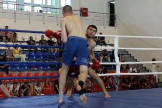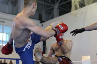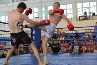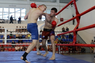 За главный приз билась четверка бойцов: тайский боксер Рахматов Шорух из Самарканда, боец Ушу Саньда Хамидулин Герман из Воскресенска и бойцы киокушина - Елин Андрей и Крутелев Сергей из Благовещенска. Конечно, каратисты уже давно практикуют кикбоксинг и даже имеют спортивные звания по виду спорта, но имеют пояса киокушина и тренируются в киокушиновском доджо по направлению Каченуке.