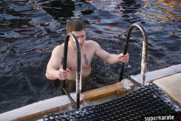 Уже третий год в Амурской региональной корпорации «Киокушинкай-Кан» практикуют закаливание учи-дешей. Более того, старшины привлекают и своих детей. Например, Дмитрий Кутека, тренер-преподаватель корпорации, в этом году привел на прорубь своего семилетнего сына Вадима.