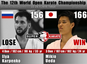22-24 ноября 2019 года в Токио, Япония, проходил 12 абсолютный Чемпионат мира по киокушинкай (The 12th World Open Karate Championship). В упорном трехдневном боевом марафоне определился новый абсолютный чемпион мира, теперь на ближайшие четыре года в киокушине IKO новый король - Микио Уеда!