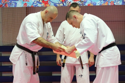 В рамках Зимней Школы РНФКК, представителями IKO Хонбу были вручены черные пояса спортсменам успешно прошедшим экзамены осенью 2019 года и три новых бранч-контракта.