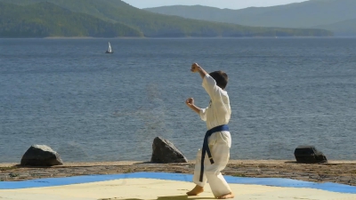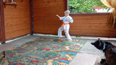 Несмотря на то, что во время исполнения ката в кадр попадали дети на самокатах, заходили коровы, фоном проплывали корабли и даже резвился кот, опытные судьи турнира оценивали только мастерство спортсмена.