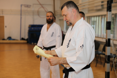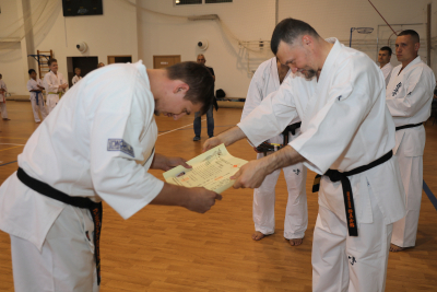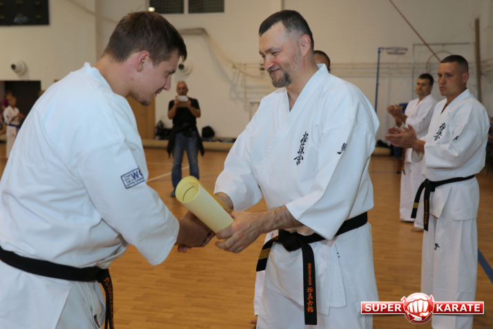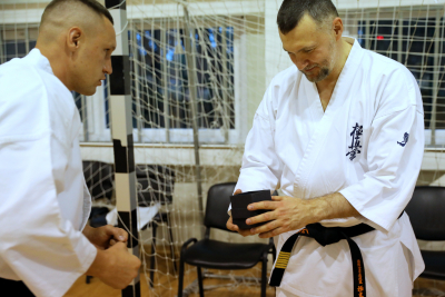 Второй блок начался с приветственных слов шихана Александра Ипатова, а также поздравлений и вручения черного пояса 2 Дан Константину Коваленко.