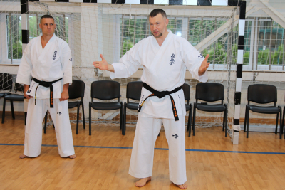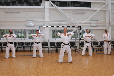 Было проведено два блока мастер-классов 25 и 26 августа. Первый тренировочный блок проводили сэнсей Максим Дедик и сэнсей Александр Еременко, им ассистировали и помогали участникам сборов: Станислав Романчев, Константин Коваленко, Игорь Загайнов и Андрей Лузин - переехавший на постоянное место жительства в Калининград.