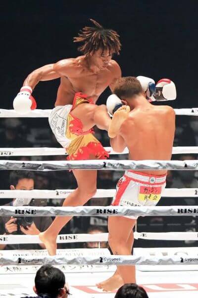 Весь бой складывался в пользу «Черной пантеры». Первый раунд он уверенно забрал активностью и точными попаданиями руками. Во втором раунде в дело пошли ноги по всем уровням и соперник нашего бойца Хирокацу Мияги, не выдержав напора, оказался в нокдауне.