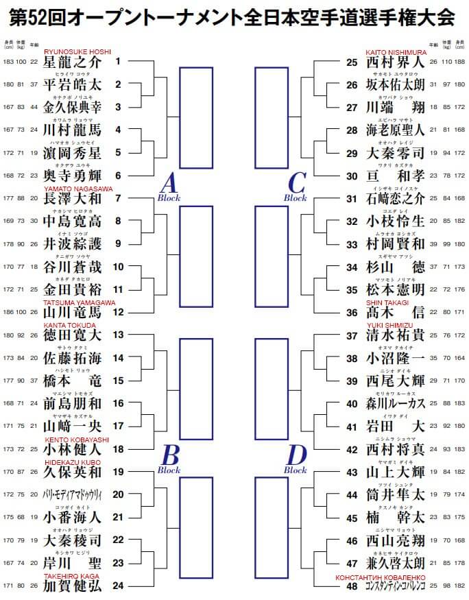 52-й абсолютный Чемпионат Японии пройдет в усеченном варианте, в турнире примут участие только 48 бойцов.В числе участников два призера 12-го абсолютного Чемпионата мира 2019 года - Рюносуке Хоши (6 место) и Константин Коваленко (5 место), они и стали основными сеяными турнира.