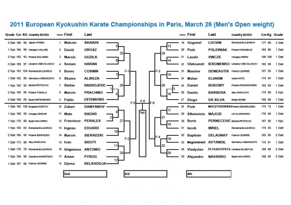 Стал известен состав пар Европейского турнира, который состоится 25-26 марта в Париже. Трое призёров будут отобраны кандидатами для участия в 10-м Абсолютном Чемпионате Мира 4-6 ноября 2011г. в Токио.