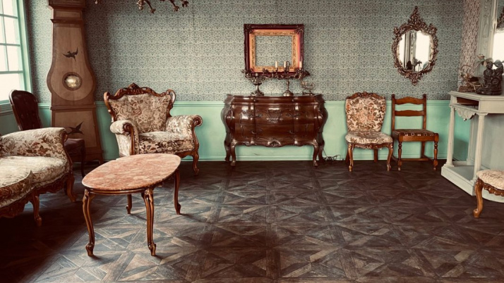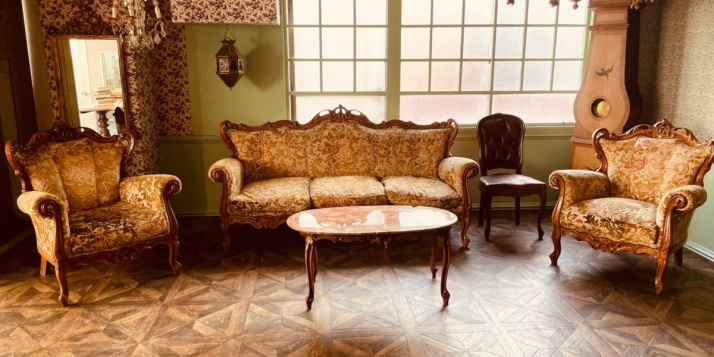Локации залов выполнены в французском стиле 19-го века. Обстановка в студии - это жемчужины антикварной мебели, которую заказывают прямо из Франции.