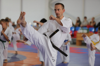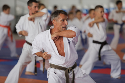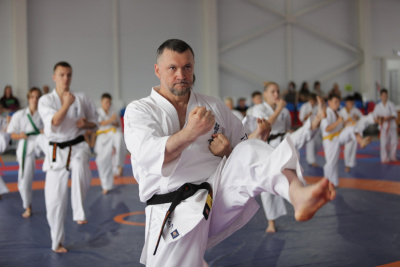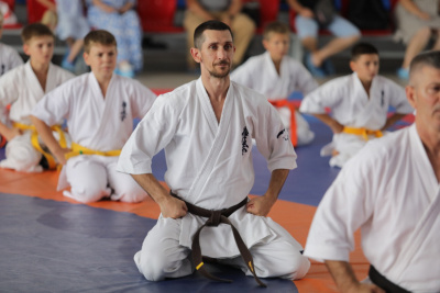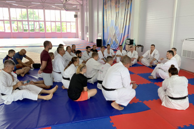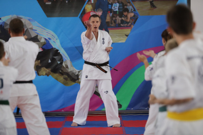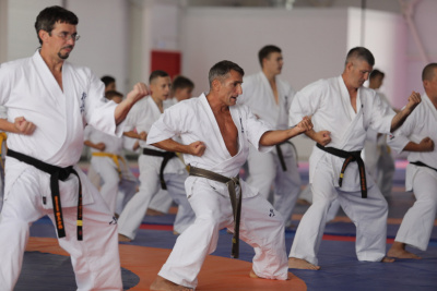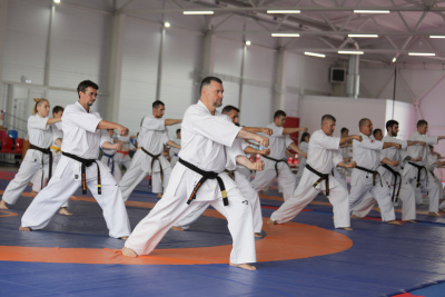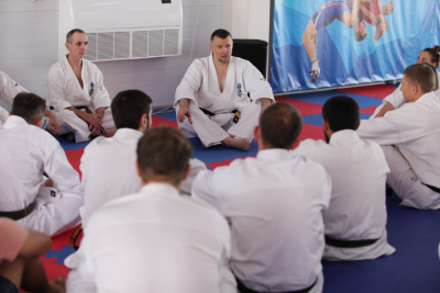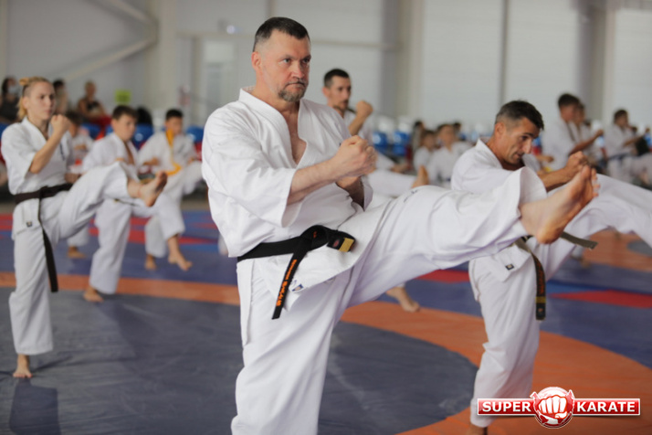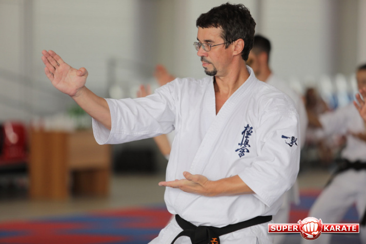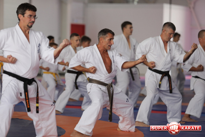 В этот приезд шихан Сергей Герасимов, как один из самых погруженных в РНФКК в тонкости изменений базовой техники кихон и ката, помогал донести актуальную информацию до инструкторов.