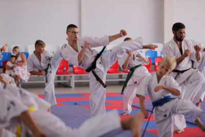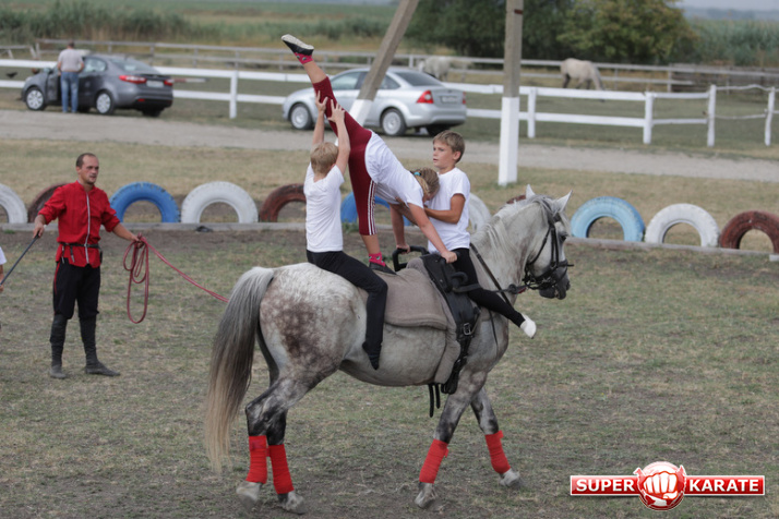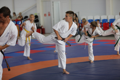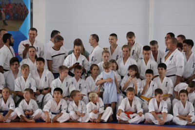 В тренировке приняли участие около 80 каратистов - инструкторы и спортсмены из Краснодара, Ейска, Геленджика, Лабинска, Армавира, Новороссийска, Приморско-Ахтарска и станиц - Брюховецкая, Лазаревская и Динская. Стоял в рядах и юный каратист из Москвы, который отдыхал с родителями неподалеку от станицы и воспользовался возможностью потренироваться у шиханов.