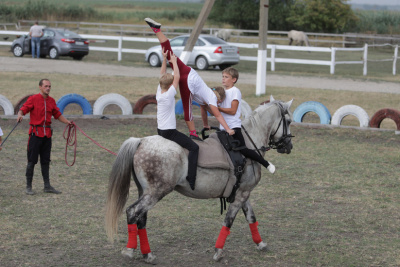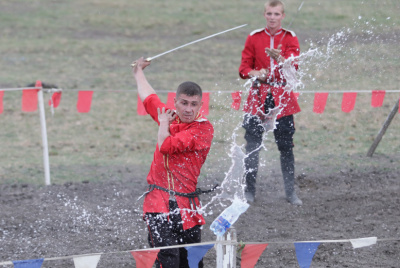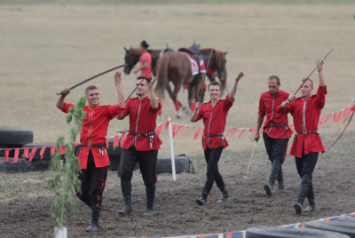 Казаки устроили красочное представление, показав искусство джигитовки и владения холодным оружием.