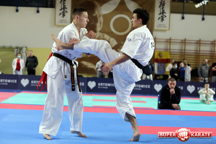 В финал 34-го Чемпионата Европы по киокушинкай (14.11.2021) вышли два российских бойца Георгий Крутых и Аскар Артемьев. Это их не первая встреча, но первый европейский финал. Очень равный поединок.