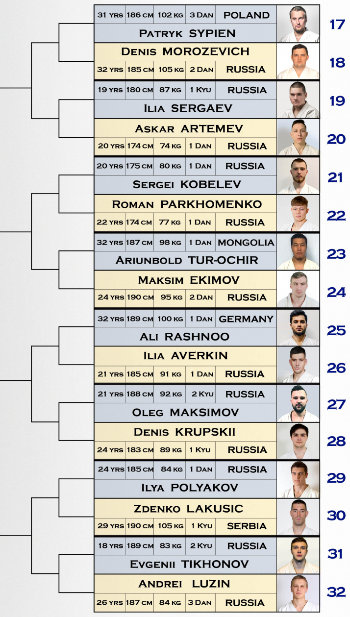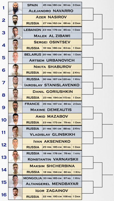 В окончательном списке участников произошли изменения. К сожалению, по травме выбыл один из фаворитов турнира серебряный призер 12-го абсолютного чемпионата мира Александр Еременко. Его заменил Максимов Олег (Московская область).