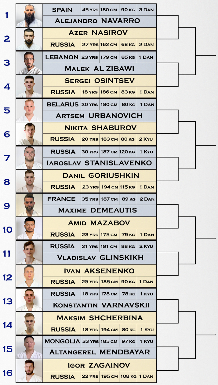 После первого круга, 16 спортсменов пройдут испытание тестом тамэшивари (разбивание предметов).