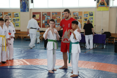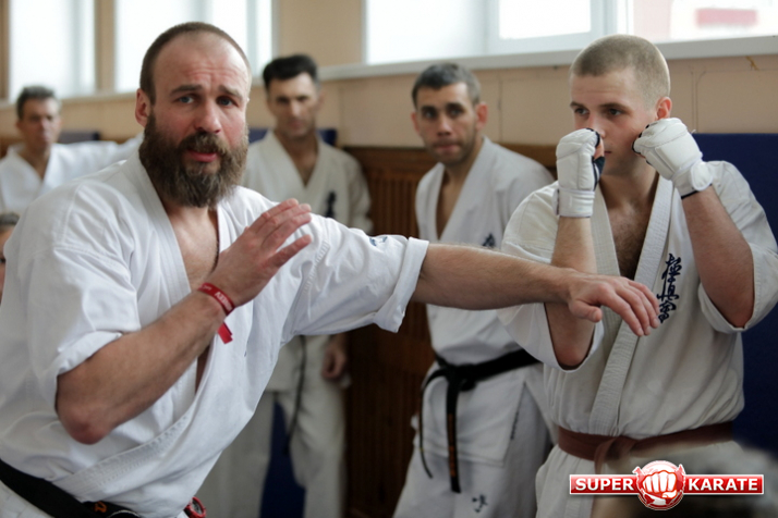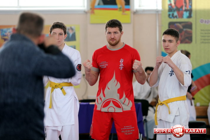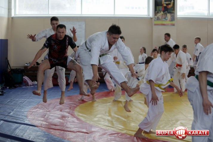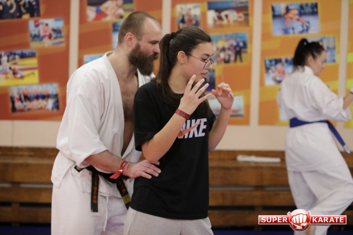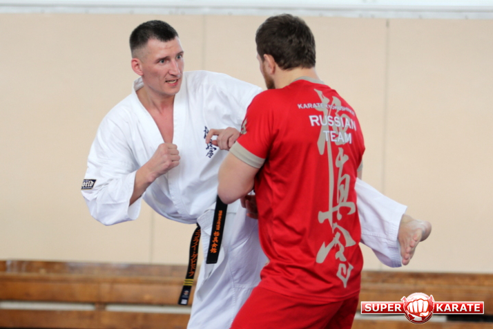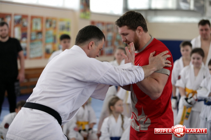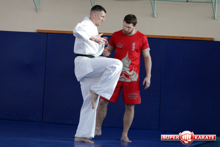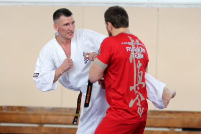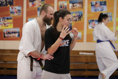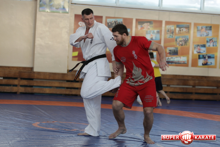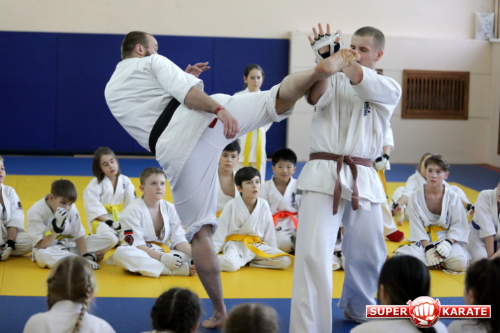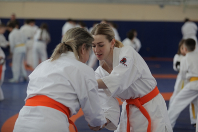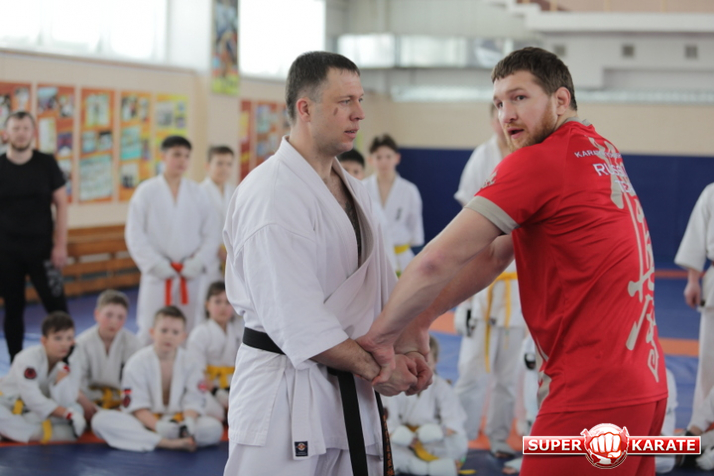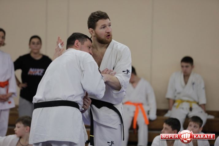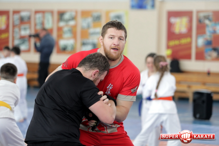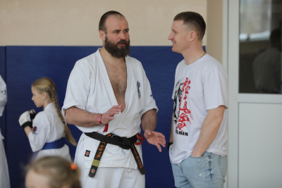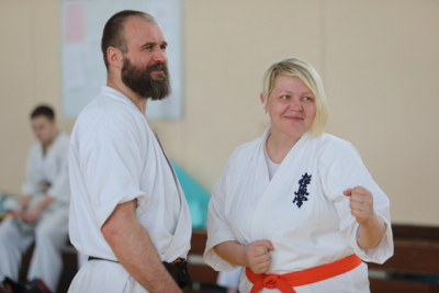 В тренировочном процессе приняли участие известные бойцы киокушинкай - сэнсей Николай Давыдов (МСМК, призер абсолютного Чемпионата мира) и его супруга Юлия Давыдова /Пинегина/ (МСМК, Чемпионка Европы).