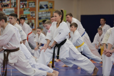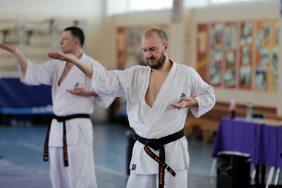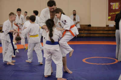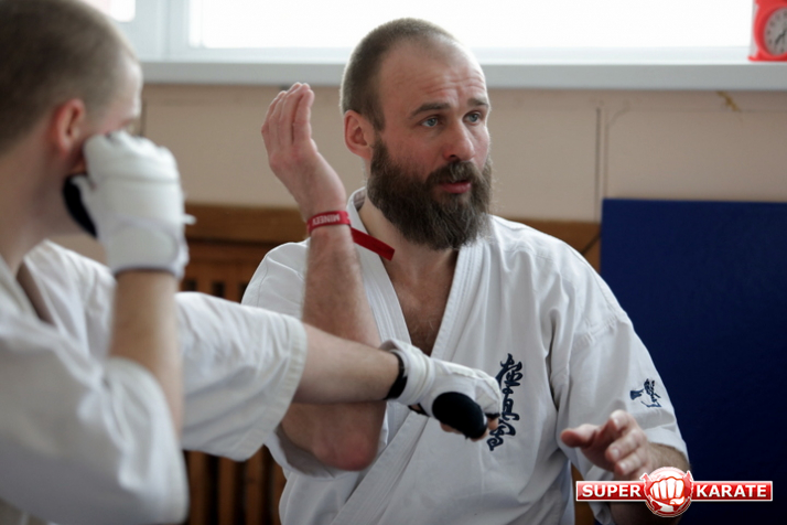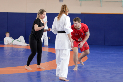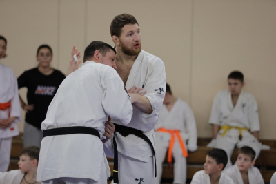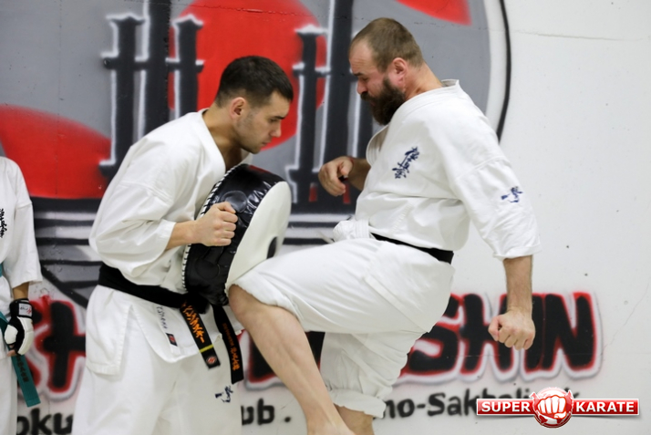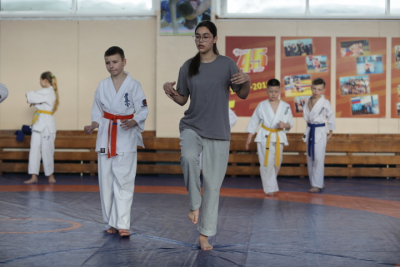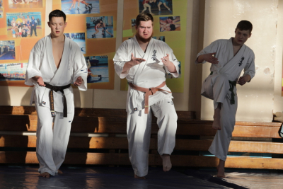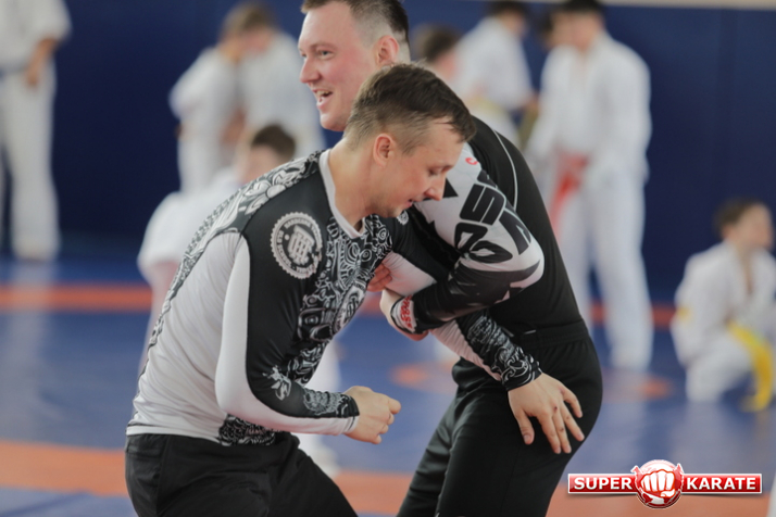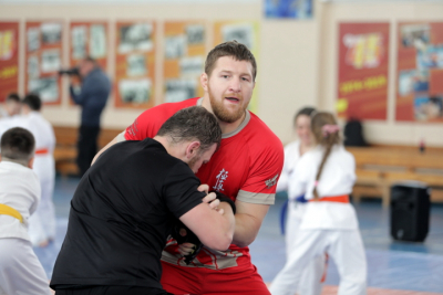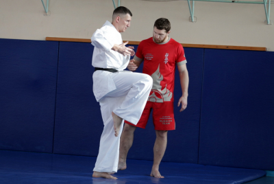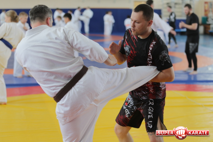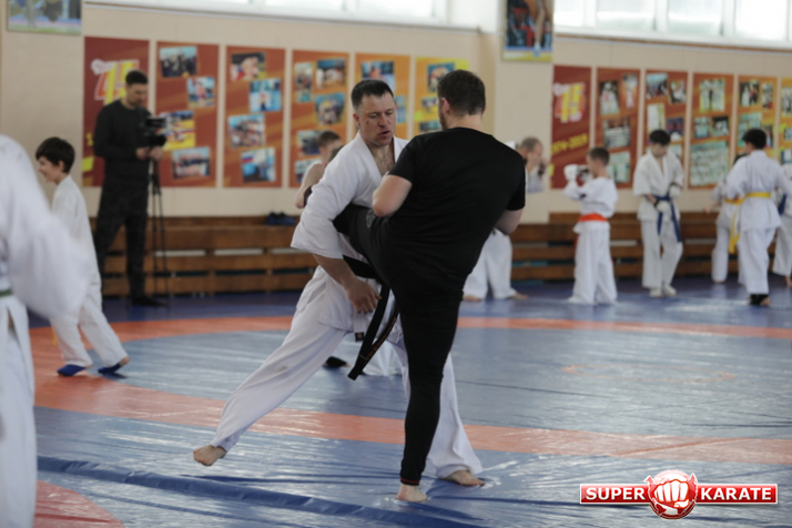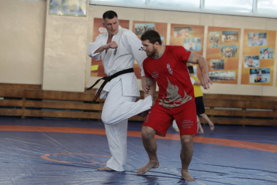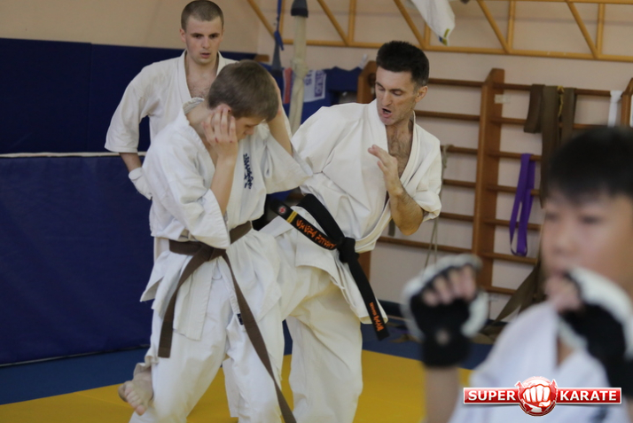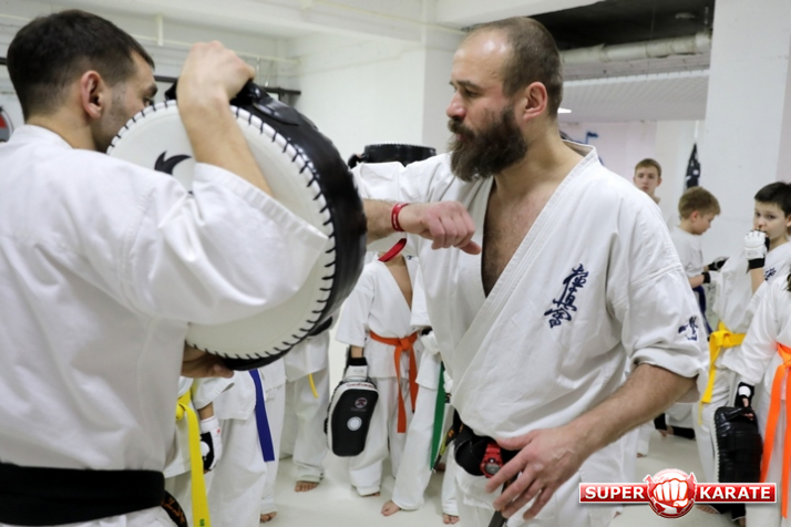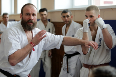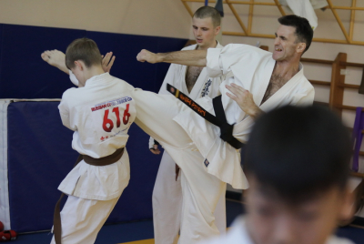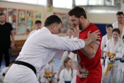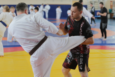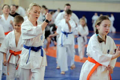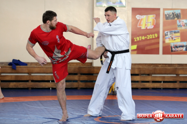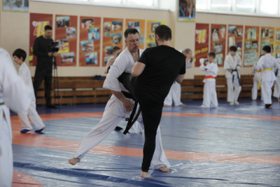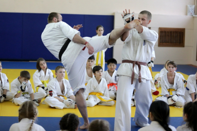 В тренировочном процессе приняли участие известные бойцы киокушинкай - сэнсей Николай Давыдов (МСМК, призер абсолютного Чемпионата мира) и его супруга Юлия Давыдова /Пинегина/ (МСМК, Чемпионка Европы).