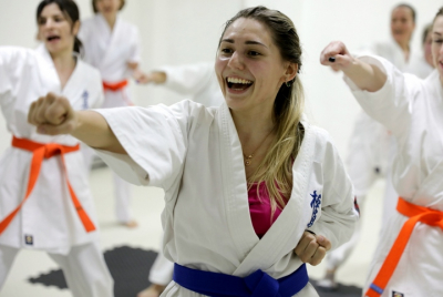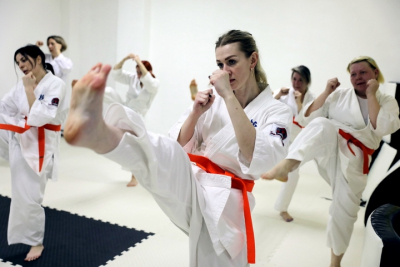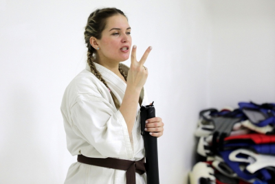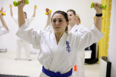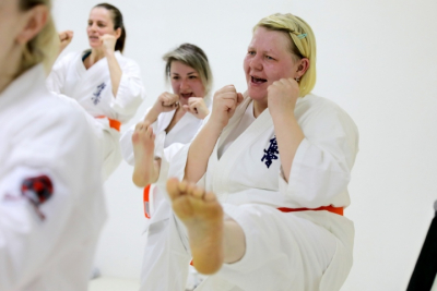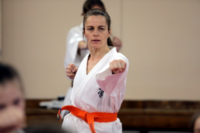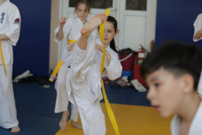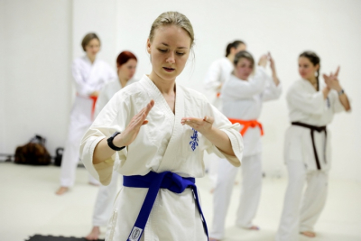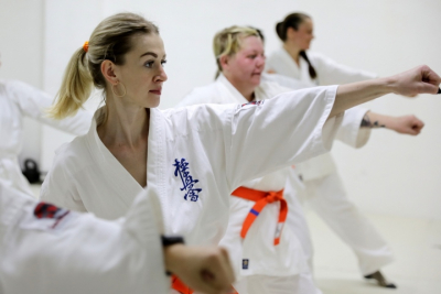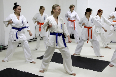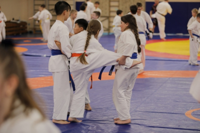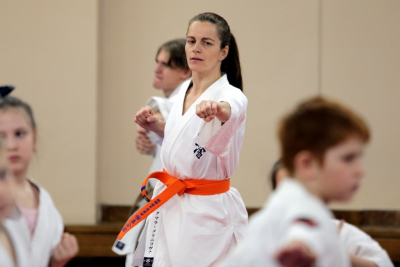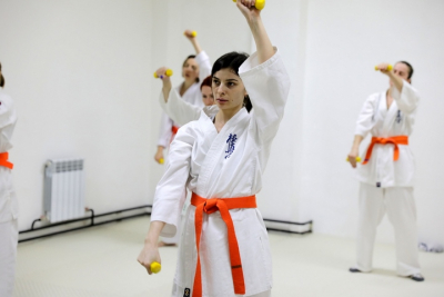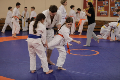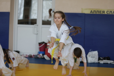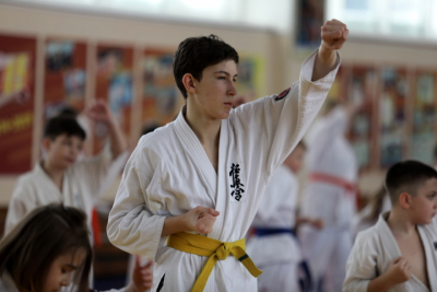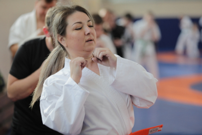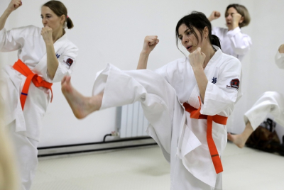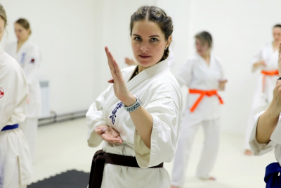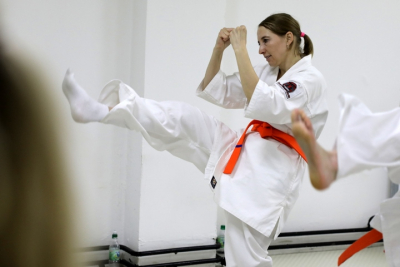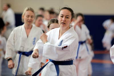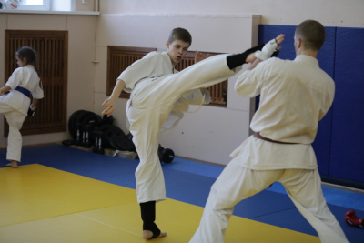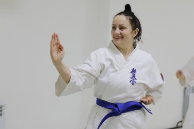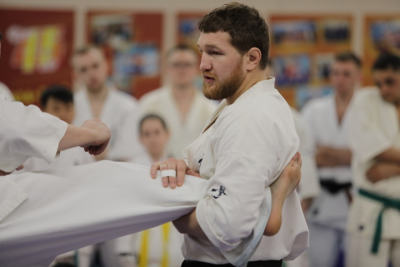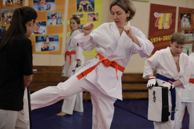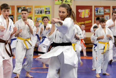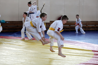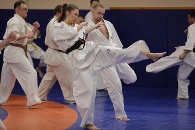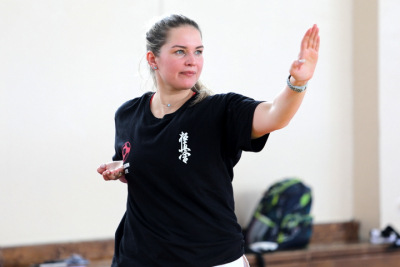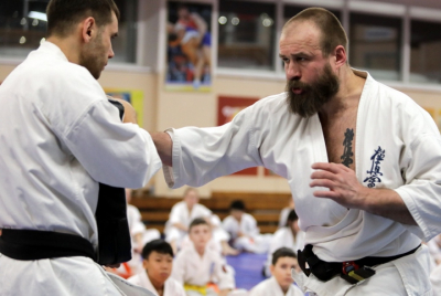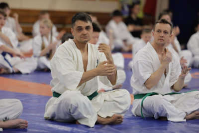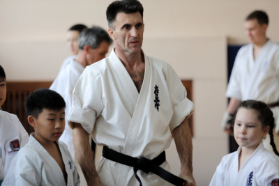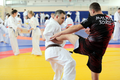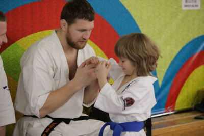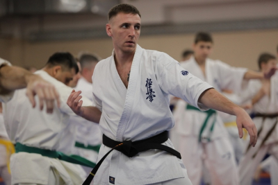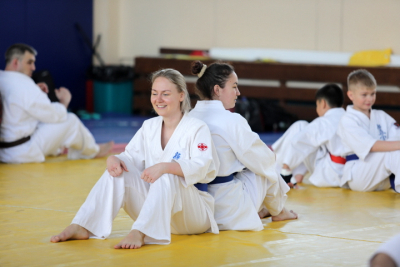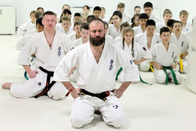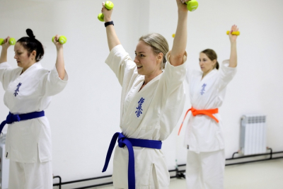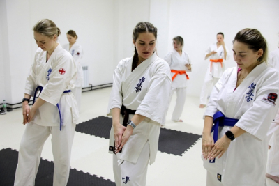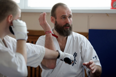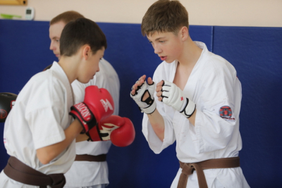 В тренировочном процессе приняли участие известные бойцы киокушинкай - сэнсей Николай Давыдов (МСМК, призер абсолютного Чемпионата мира) и его супруга Юлия Давыдова /Пинегина/ (МСМК, Чемпионка Европы).