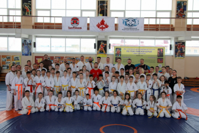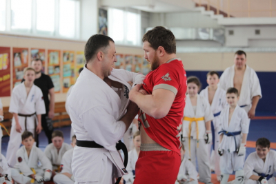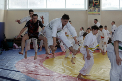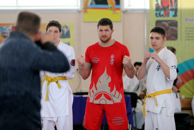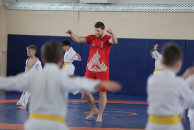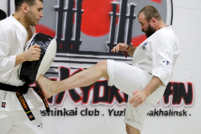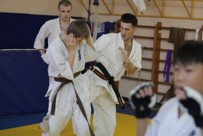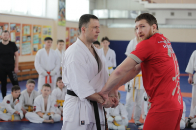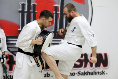 На Сахалине с 25 по 27 февраля 2022 года прошли открытые тренировки бранч-чифа региона Максима Дедика и Владимира Минеева - обладателя чемпионского пояса «AMC Fight Nights Global» и черного пояса киокушинкай.
