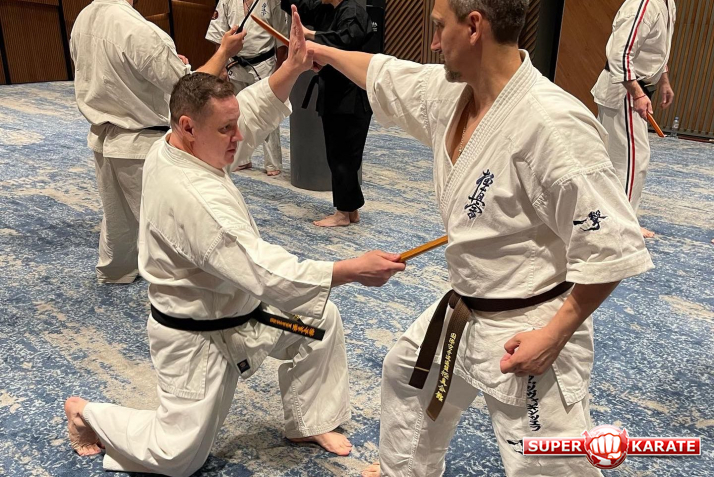 В течение 8 часов, были рассмотрены ката и бункай без оружия и с предметами (пояс, нож, клинок, шест).