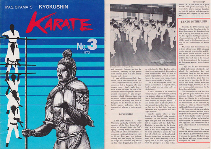 Сато рассказал, что он провел ряд показательных выступлений в СССР, что, по его мнению, во многом способствовало становлению там каратэ.