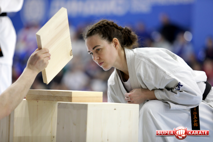 Согласно правилам тамэшивари, при равном количестве разбитых досок преимущество у более легкого спортсмена. У мужчин так определились 2 и 3 место, а у женщин все призовые места.