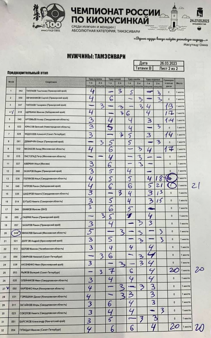 Результаты чемпионата России по тамэшивариТамэшивари: мужчины