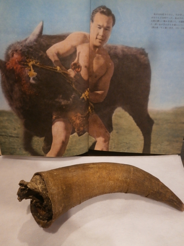 Это единственный рог, который можно документально подтвердить, потому что остались материалы о том, что это рог именно того быка, которого убил Масутацу Ояма.