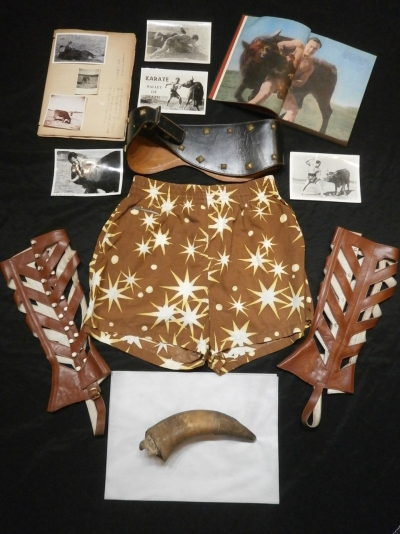 - Пояс и ремни на голени (оригинал) использованные в схватке с быком 11 ноября 1956 года