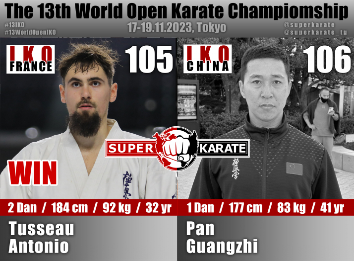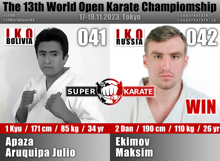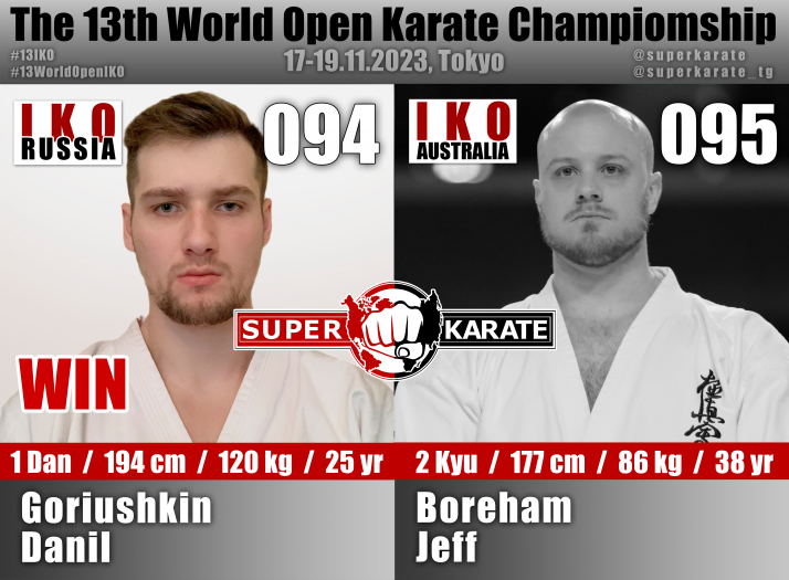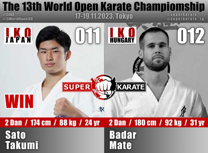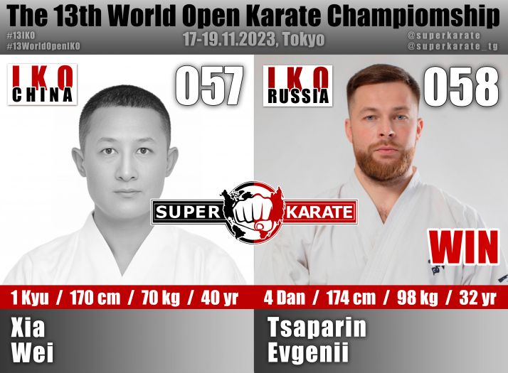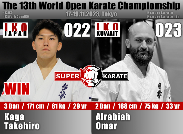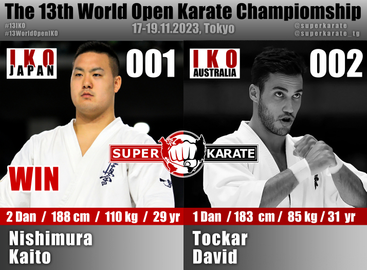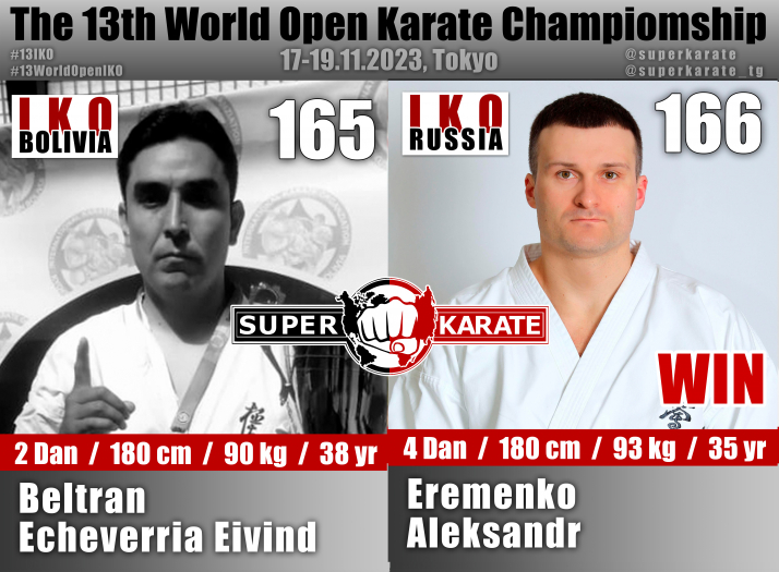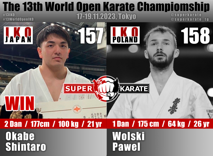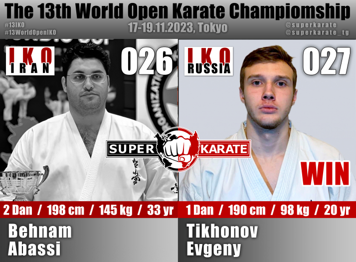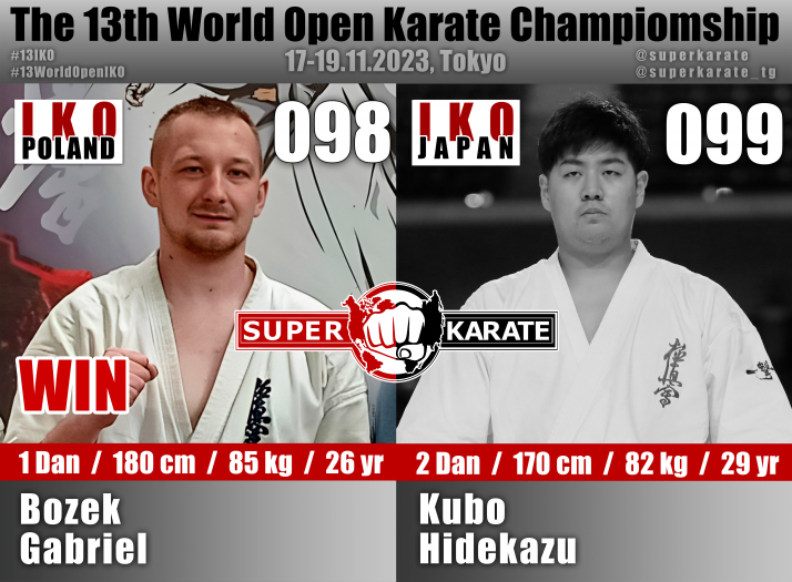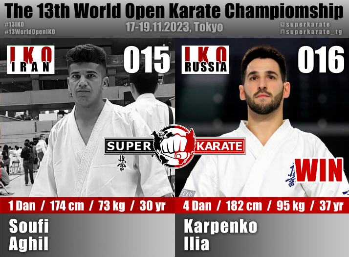 17 ноября 2023 года в Токийском дворце спорта стартовал 13-й абсолютный чемпионат мира среди мужчин и 4-й абсолютный чемпионат мира среди женщин (The 4th Women’s World Open Karate Championship).