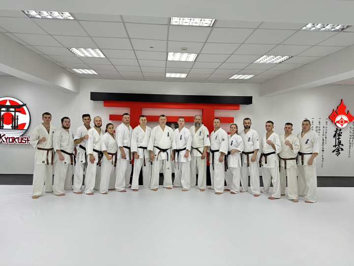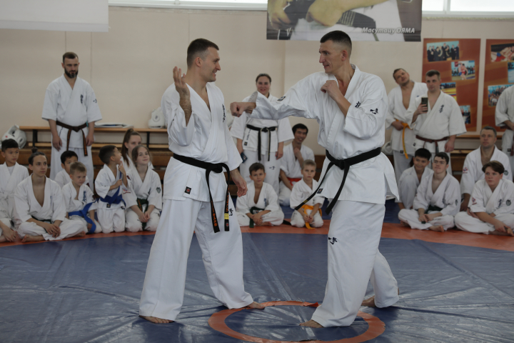 После небольшой тренировки, старшие ученики и тренеры организации провели показательные выступления, с ката, кумитэ и тамэшивари.