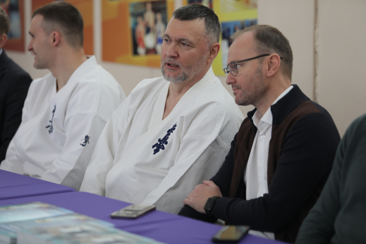 Шихан представил руководителей «Сахалинской Федерации Киокусинкай» Никиту Шимко и Артема Хворикова. Сергея Львовича пригласили на Чемпионат и Первенство ДФО по киокусинкай, которые пройдут в феврале 2024 года.