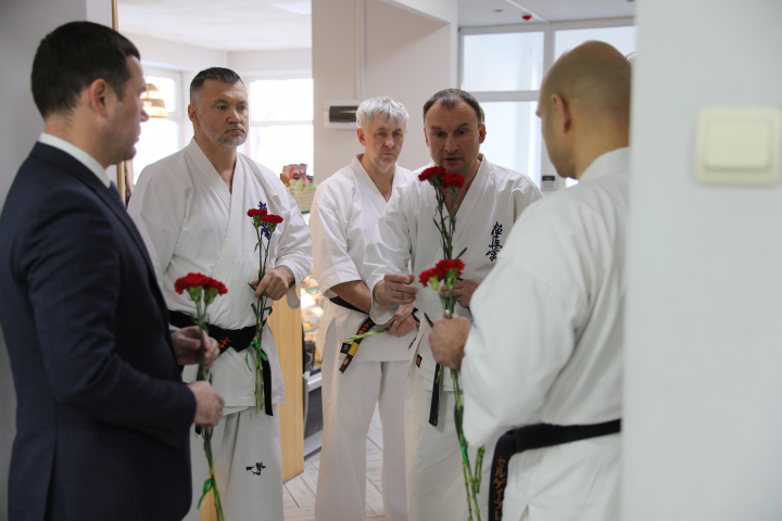 В церемонии приняли участие: министр спорта Хабаровского края Дмитрий Чикунов, владыка Пантелеймон, шихан Александр Ипатов, шихан Александр Классен, сэнсей Всеволод Мохирев и сэнсеи-экзаменаторы (Еременко, Плеханов, Бобик).