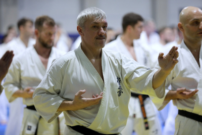 Первая тренировка традиционно прошла под руководством шихана Александра Ипатова - президента Российской Национальной Федерации каратэ киокушинкай.