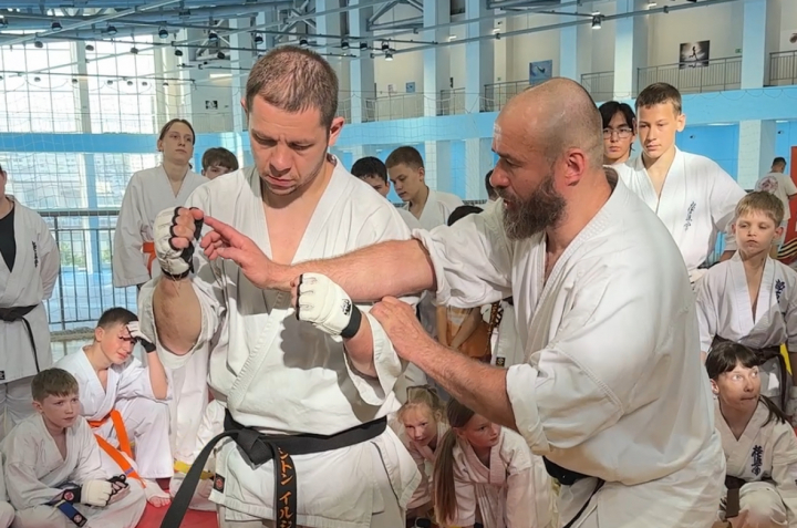 Следующим этапом стал мастер-класс по кумитэ от шихана Максима Дедика, в котором он поделился своими чемпионским опытом и многолетними наработками в понимании боя.