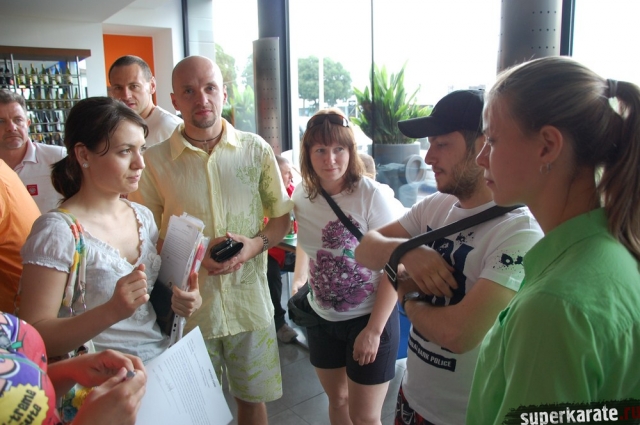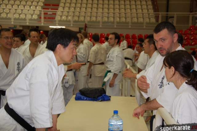 Мандатная комиссия была расписана по алфавиту и по часам, участников было действительно много, и сразу же бросились в глаза спортивные костюмы с надписью "Spain". Позже, на собрании объявили, что в ИКО вернулись многие Доджо из Испании. Участников по кумитэ было больше 100, по ката у женщин - 23 человека, у мужчин - 22 человека.