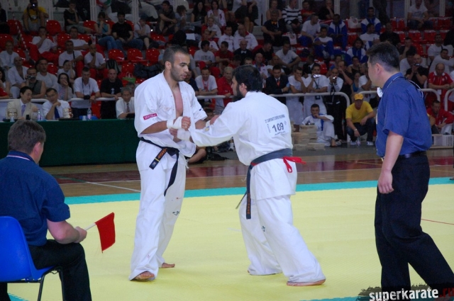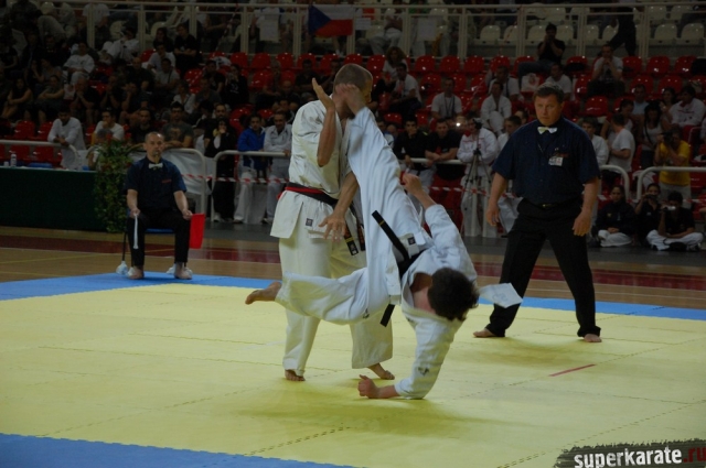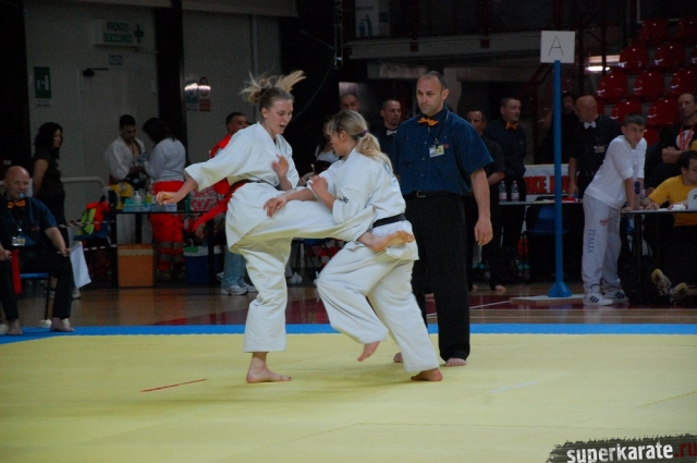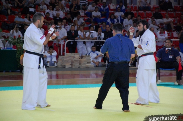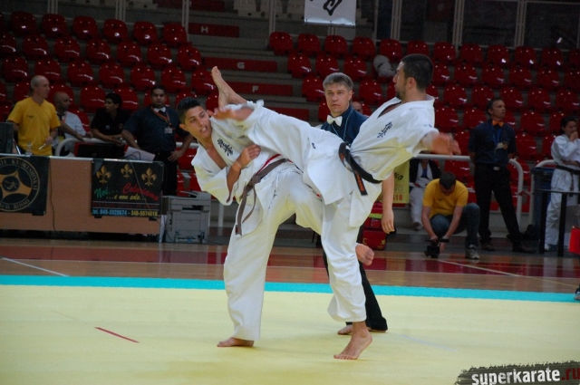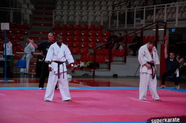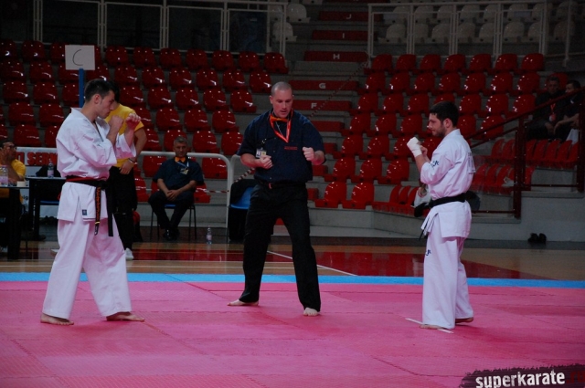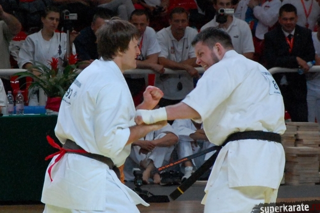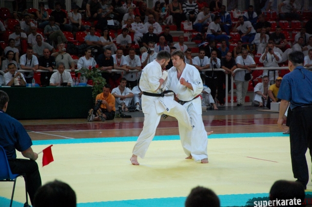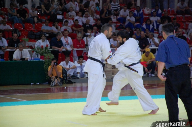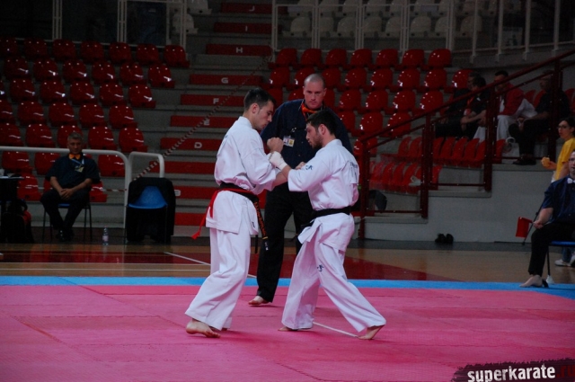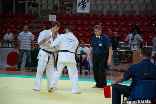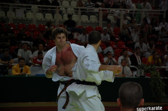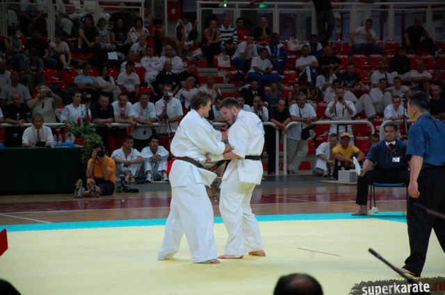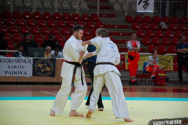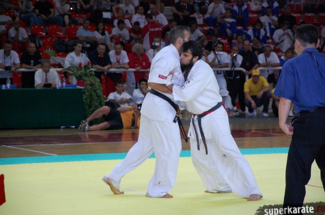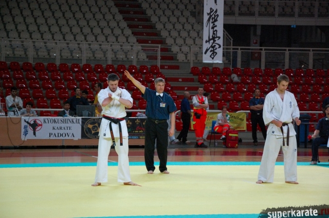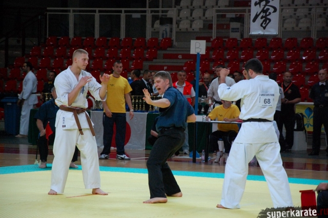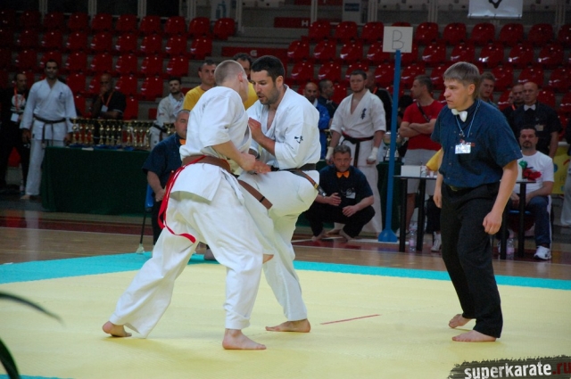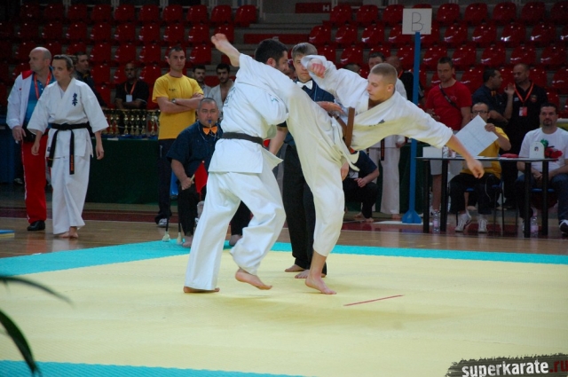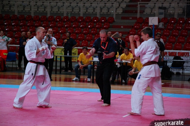 В кумитэ в весе до 80 кг за Украину выступал Амет Юнусов, который учится и тренируется в Питере, и несмотря на вес в 72 кг убедительно дошел до финала и стал Чемпионом Европы, в полуфинальном бою выиграв у Лючиана Гогонеля (79 кг, 3 дан, Румыния). До 90 кг четыре боя выиграл украинец Александр Еременко и наконец добрался до заслуженного титула Чемпиона Европы. Семен Гаран - третье место в этой же категории, в супертяжах - никаких неожиданностей - выиграл Алехандро Наварро. Второе место у любимца публики, француза Джема Белходжа. У девушек в среднем весе снова триумф Украины: Чемпионка Европы - Марианна Вербицкая.