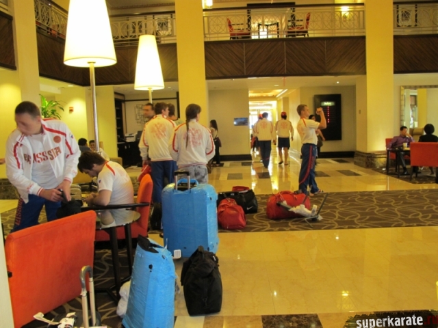 Закинув вещи и сполоснув мощи собрались у рецепции, где встретили добиравшегося отдельно Годерзи Капанадзе, прическа которого стала похожей на черный одуванчик и с которой он обещал не расставаться, и даже дать ей спокойно расти до Чемпионата Мира.
