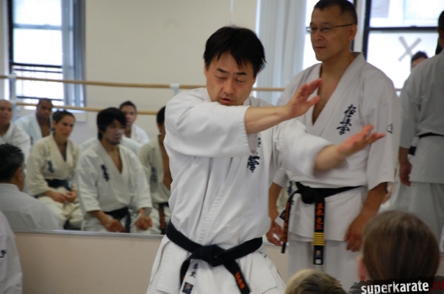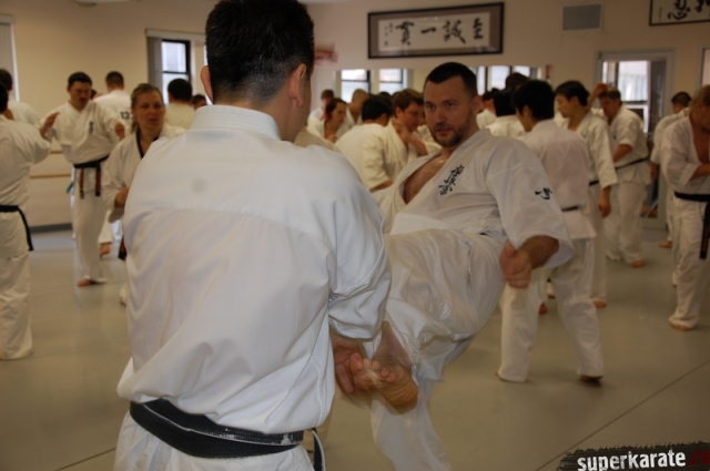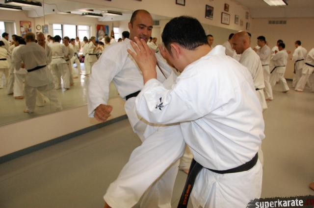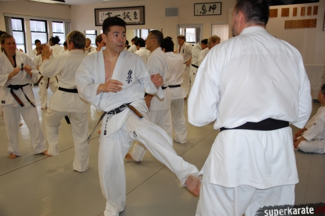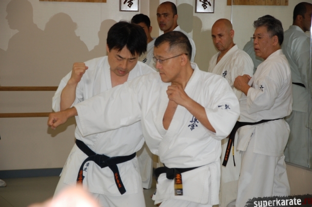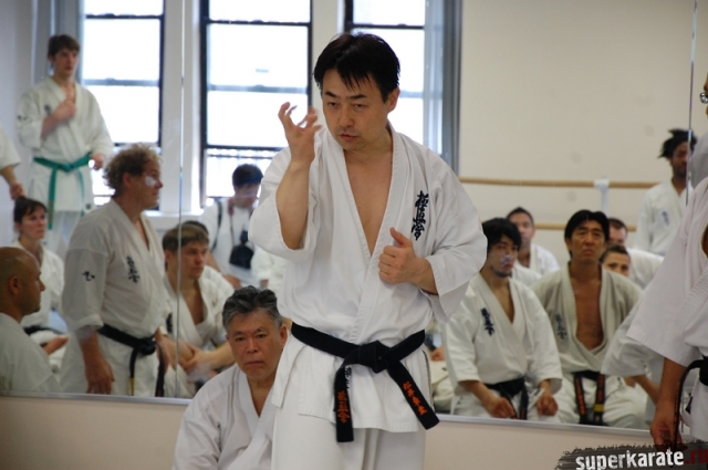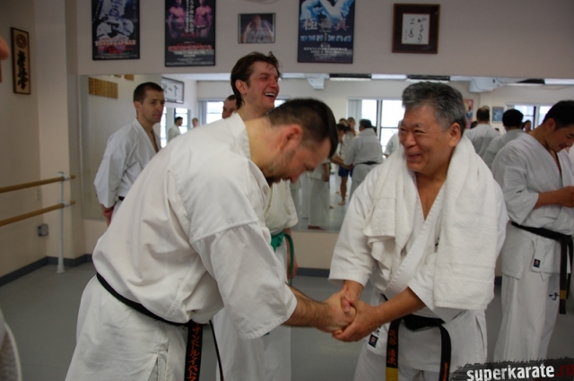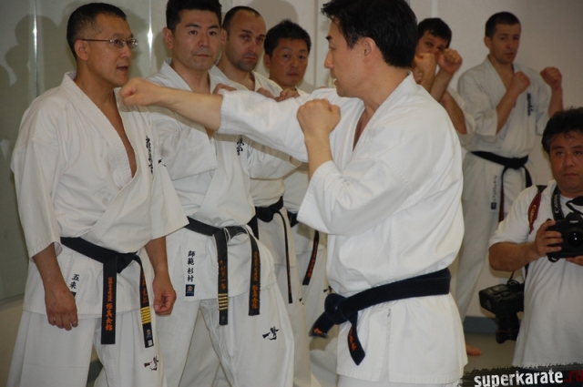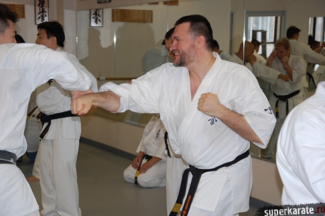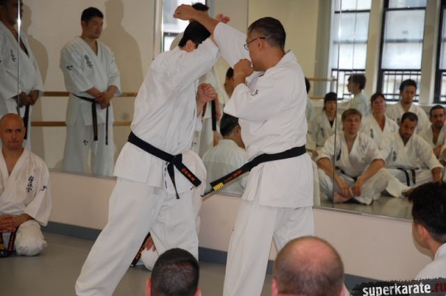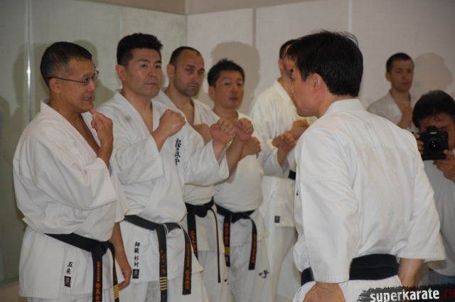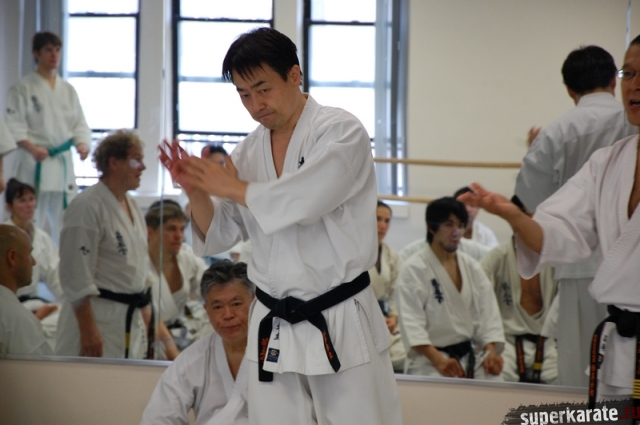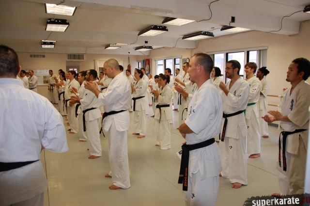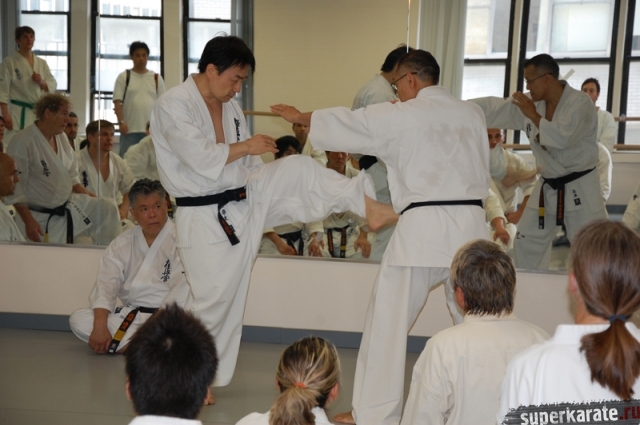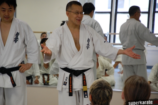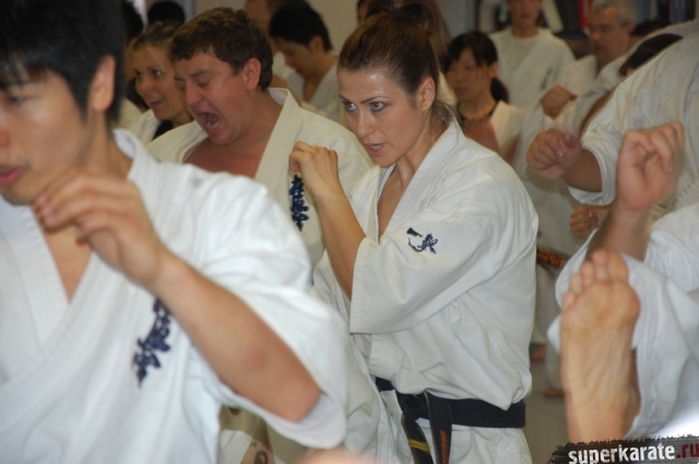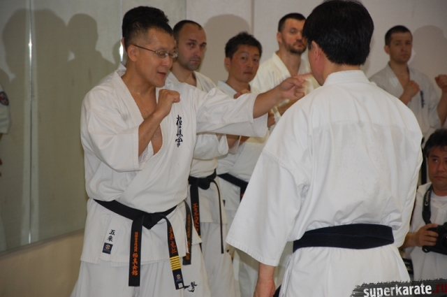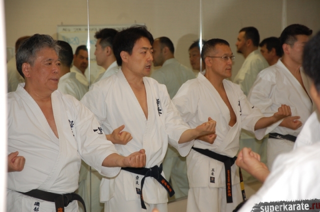 Временами шутил и приводил смешные и интересные примеры из своей жизни. Например, он рассказал, что известный боец Чичиноге в свое время употреблял много алкоголя и мог тренироваться в любом состоянии. Несмотря на, казалось бы несовместимые со спортом, возлияния, он вполне достойно и тренировался, и выступал на соревнованиях. Канчо этот пример привел, чтобы показать, что чемпион должен быть чемпионом во всем и тем более в каратэ, в каком состоянии бы он не был (так как перевод был тройным японский/английский/русский, то возможно я услышал то, что хотел услышать - главред).