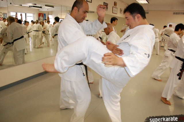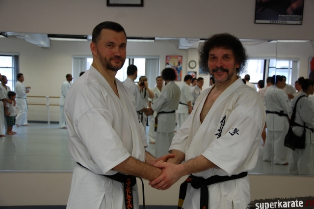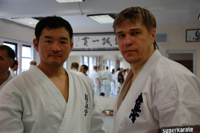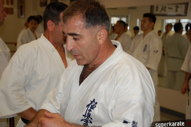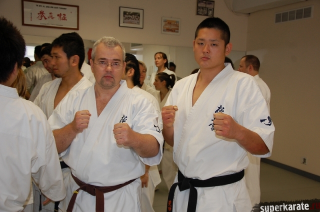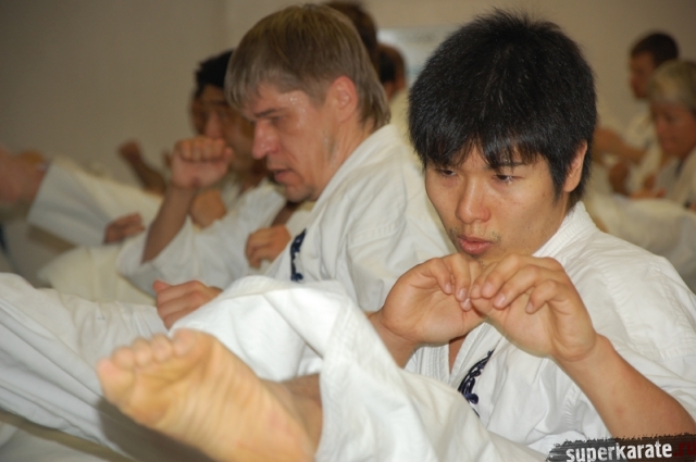 Начал тренировку шихан Сугимура, он провел стандартную киокушиновскую разминку. За тем за дело взялся сам Канчо, который выглядел, по сравнению с московским визитом, похудевшим и свежим. Его перестали беспокоить боли в тазобедренных суставах (и здесь приложил свои руки доктор Прошкин), и он сам демонстрировал всю боевую технику, ассистировал ему в качестве спарринг партнера шихан Горай.