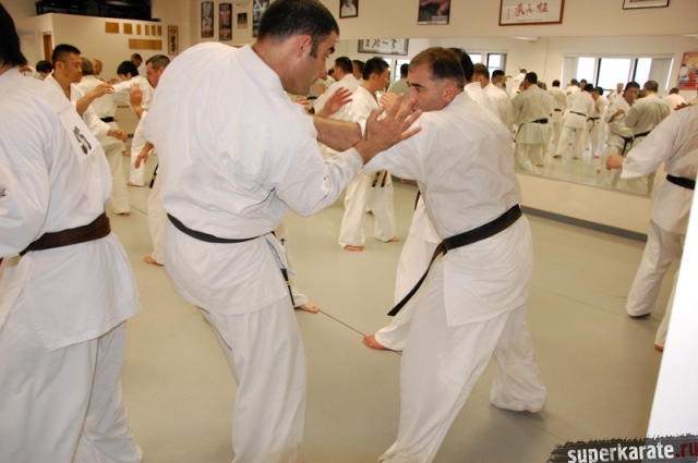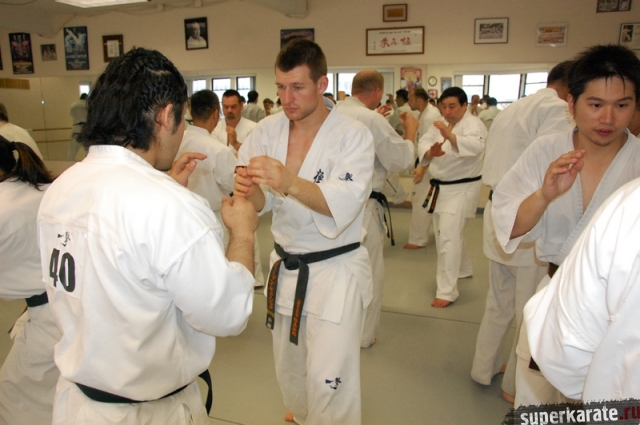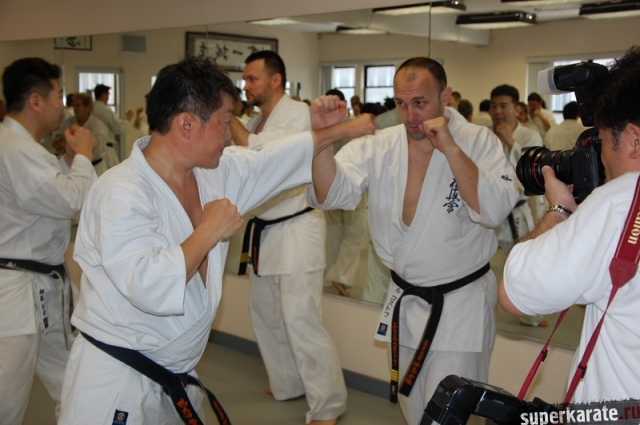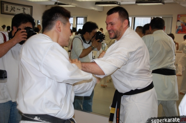 Фотографа из World Karate заинтересовала спарринговая работа пары шиханов Сугимура - Ипатов. Они весело гоняли друг друга и старались подловить, то на скорости, то на финтах...