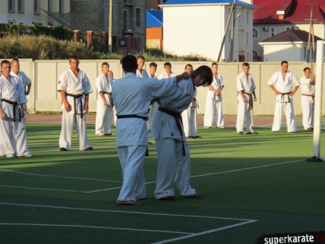 Формат сборов - утренняя двухчасовая тренировка и вечерние состязания. Только в спецгруппе, которая работает предсезонку по плану шихана Фесенко, есть и утренняя, и вечерняя тренировки. В этом году был упразднен формат группы Ката, вместо нее по руководством бранч-чифа Алексея Башлыкова была создана группа ККК (Кихон-Кумитэ-Ката).