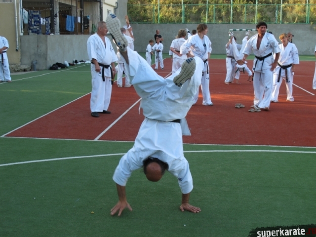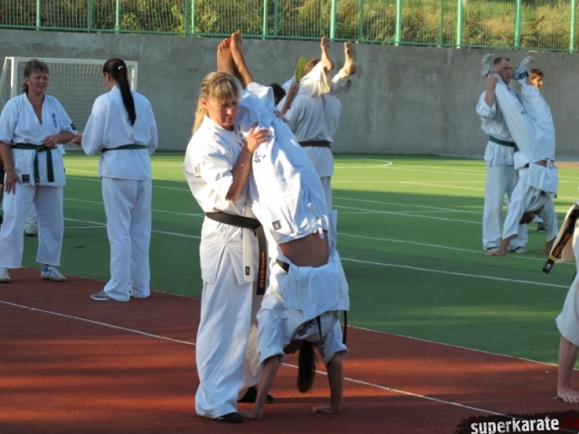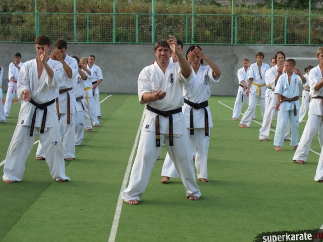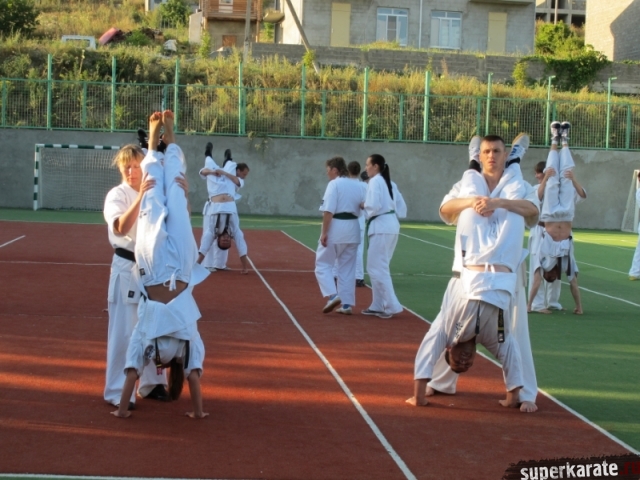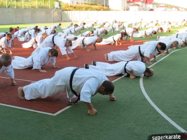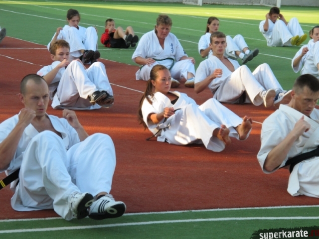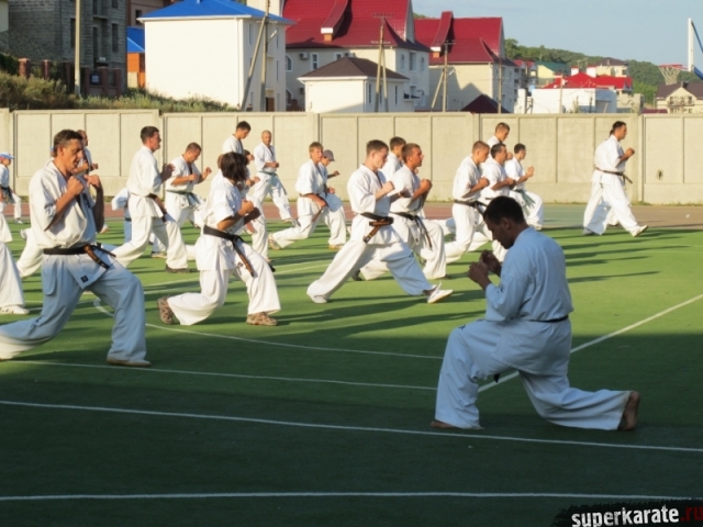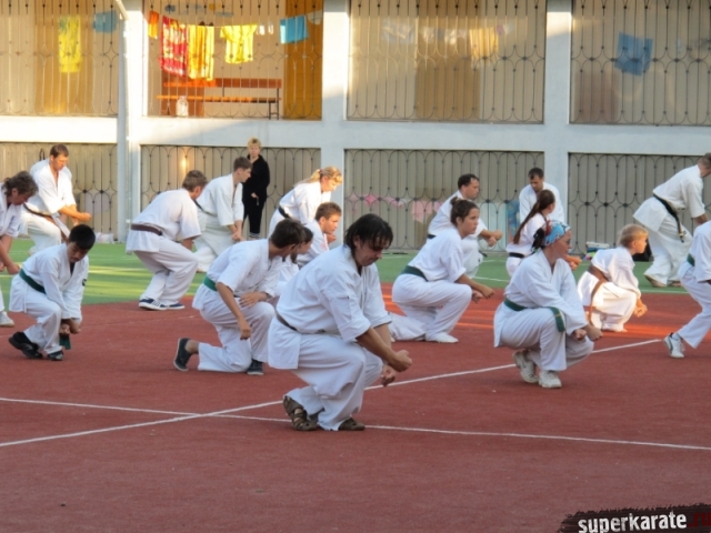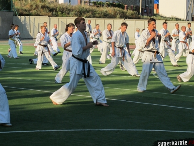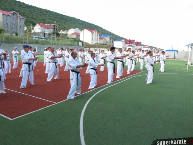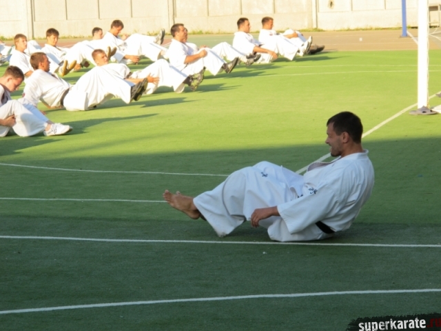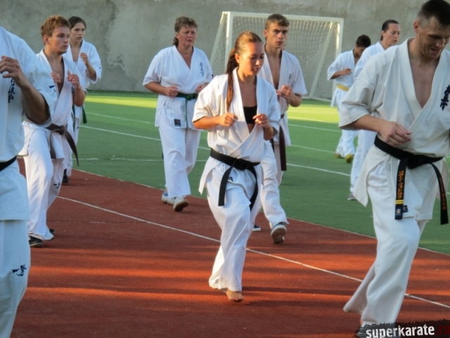 Группа сэнсея Башлыкова, которая тренировалась на стадионе, застала врасплох тех кто за годы сборов привык спокойному и размеренному ритму тренировок в группе Ката. В этом году преобразованная в ККК стадионная группа, помимо кихона, бункай и ката, активно занималась физо и кумитэ.