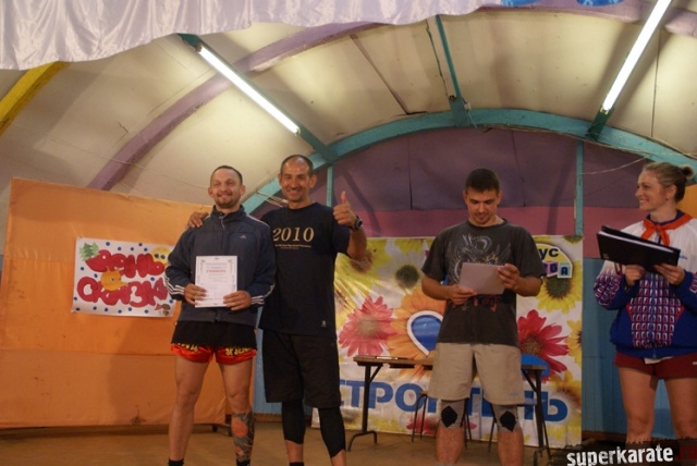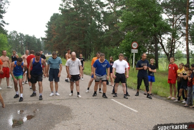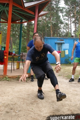 В этом году желающих поучаствовать было 33 человека. И неизменно, каждый год в пятиборье участвует директор корпорации шихан Анатолий Фесенко, наравне со своими подчиненными. Этапы пятиборья - кросс на тысячу метров, жим штанги, подтягивание, приседание и разбивание твердых предметов. За соревнованиями тренеров-преподавателей внимательно следят их воспитанники. Поэтому сэмпаи просто обязаны быть на высоте, сдавая экзамен на мастерство, выносливость и профессионализм.