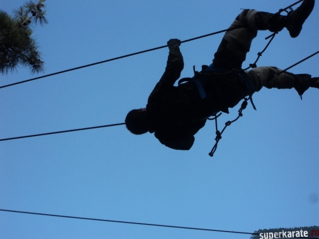 Самые трудные тренировки, по отзывам дальневосточников это бесконечный марш (около километра) с различными двойками/тройками ударов ногами на каждый шаг и работа на канатах, на высоте почти 20 метров.