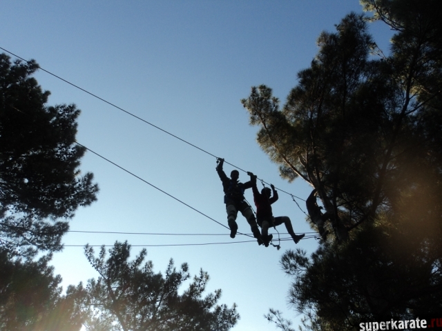 И если первое упражнение было просто выматывающим, то второе сложным и физически и психологически. По впечатлению Годерзи Капанадзе, каждое прохождение по канатам и борьба на них вызывали внутреннюю мобилизацию схожую с концентрацией на серьезном турнире. Твое тело должно быть готовым к канатам, как к схватке - в меру расслабленным, но готовым взорваться в любой момент.