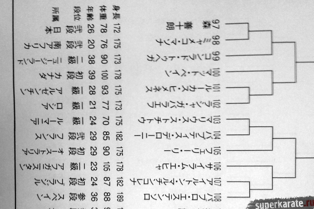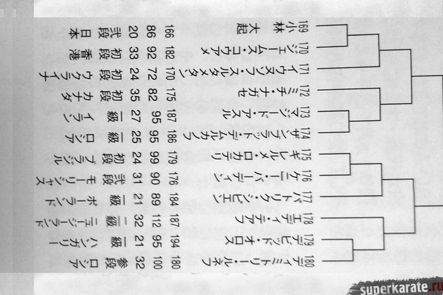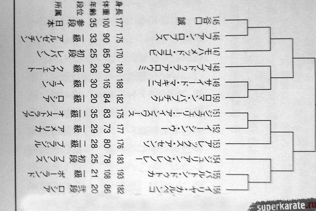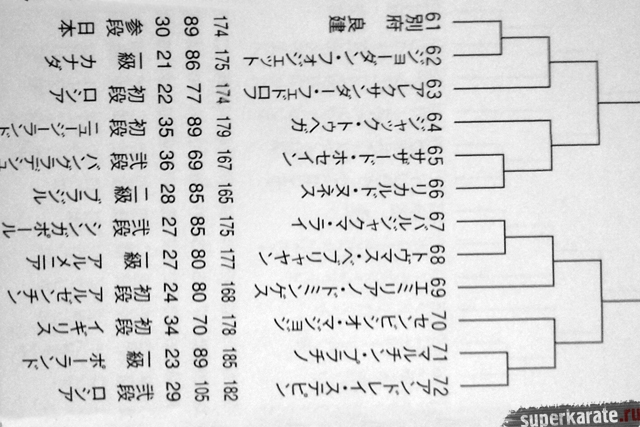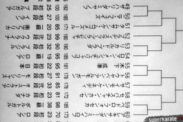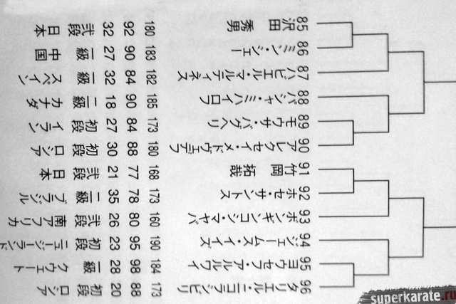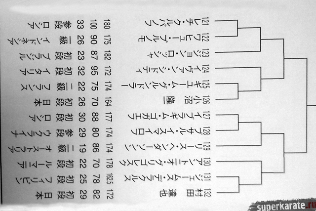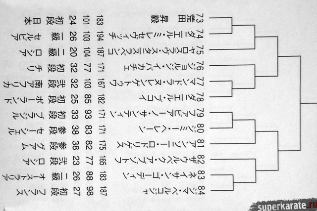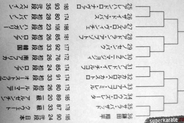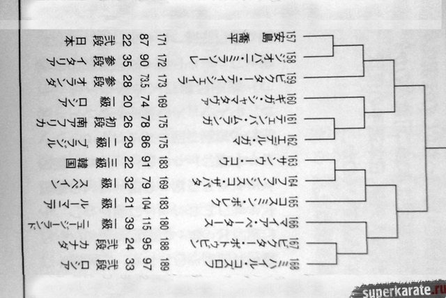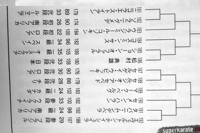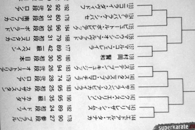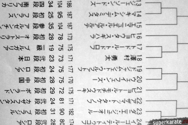 Полная пуля Чемпионата мира опубликована в японском журнале "World Karate". Предлагаем вашему вниманию список главных имен турнира по блокам и номерам.